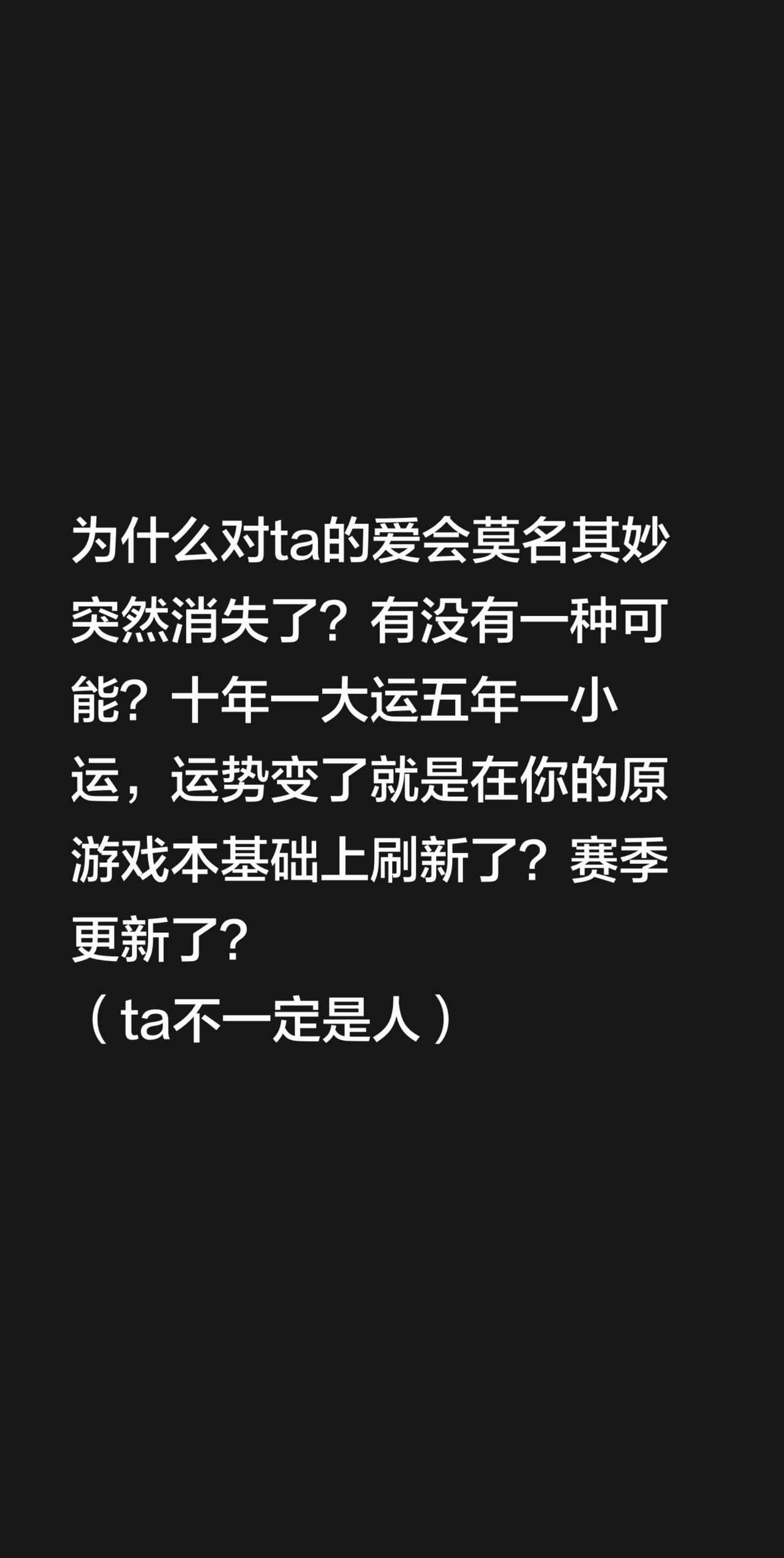 为什么对ta的爱会莫名其妙突然消失了?有没有一种可能?十年一大运五年一小运,运势变了就是在你的原游戏本基础上刷新了?赛季更新了? (ta不一定是人)