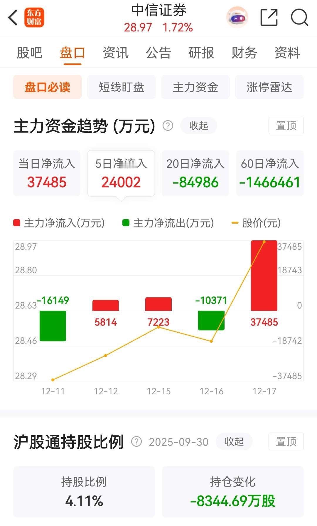 券茅东方财富和券商一哥中信证券双双平开高走,且都收出放量中阳线,均被主力资金净买