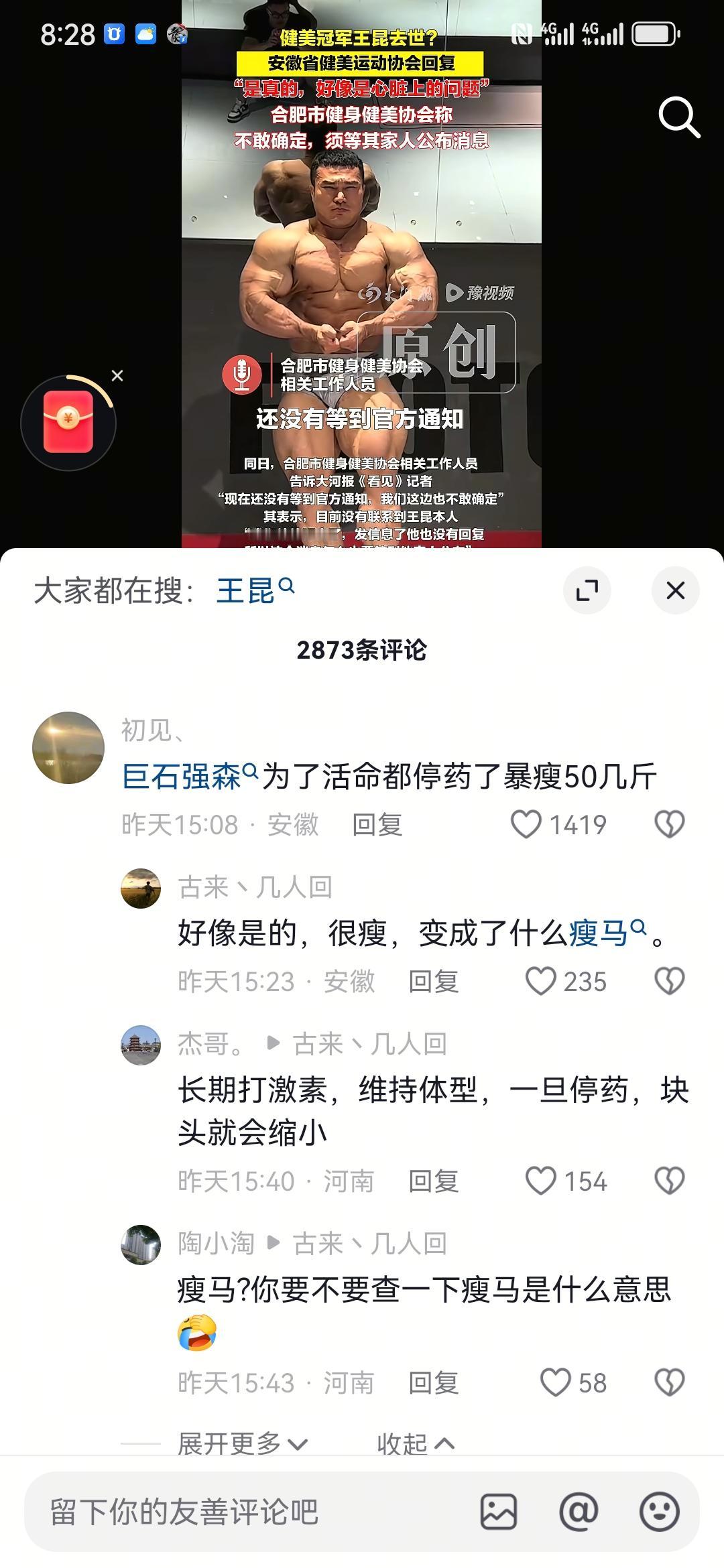 “健美先生”王昆去世,让人惋惜,然而惋惜之余,我们是不是应该反思一下。 首先,这种所谓“健美”真的美吗? 起码不符合我们中华传统的美,可以说是西方文化的“健美”,我们中华的美是“精气神”的统一,不是肌肉越大越好,什么事情都是过犹不及。 其次,即便这是美的,但是如果实实在在的影响健康,那我们还需要这样的美吗?如果还需要,那不如再裹起小脚,裹小脚还不会死人呢。 西方好的东西,我们要学习,但不好的东西,我们应该果断抛弃。说的难听点,健美比赛,健的都不像个人了。 当然,我说的是健美比赛,平常自己稍微锻炼点不在此列。