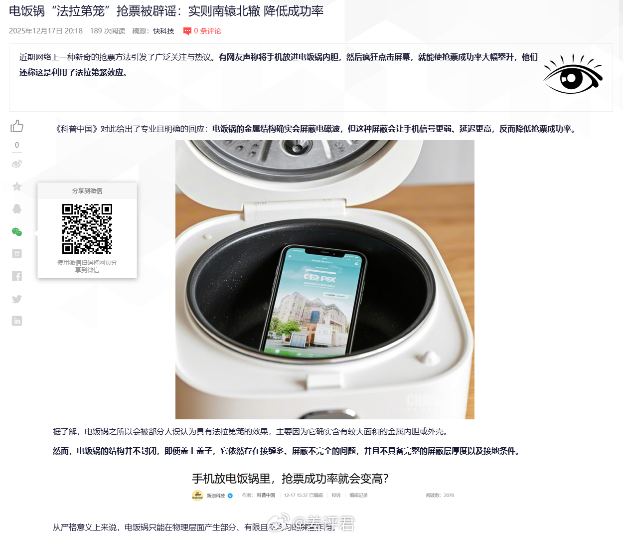 #差评说数码#手机放电饭锅里抢票能提高成功率?其实网络质量反而会降低,这谣言属
