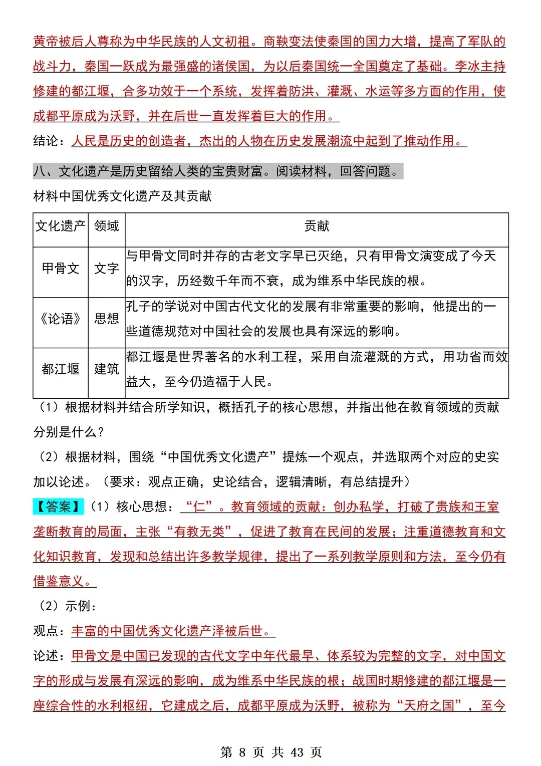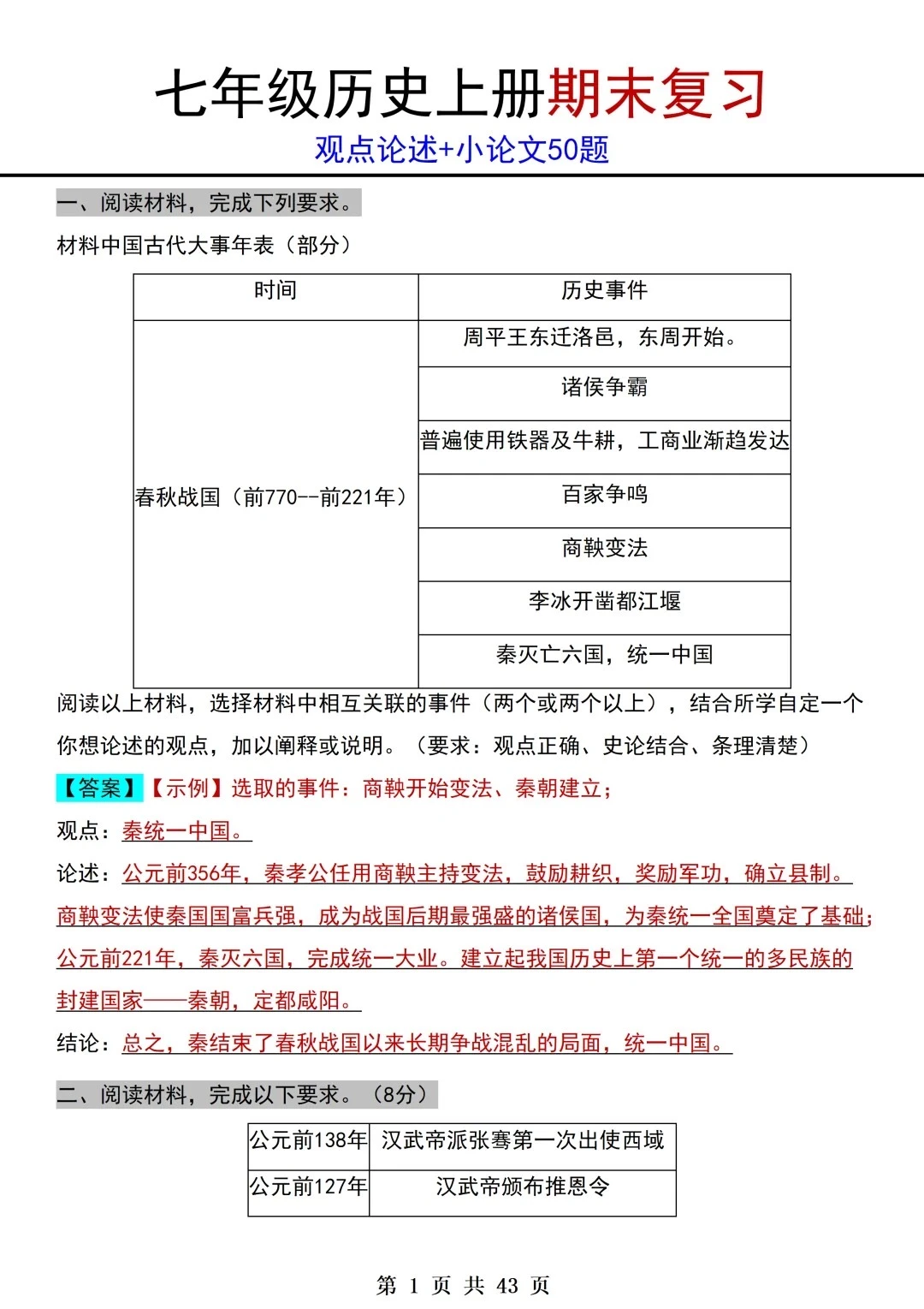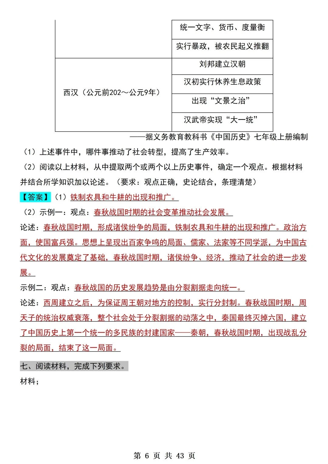 家长收藏孩子受益 知识点总结 七年级 七年级上册历史 初中历史 初一历史 必考考点 必背知识点 期末复习 学渣逆袭指南