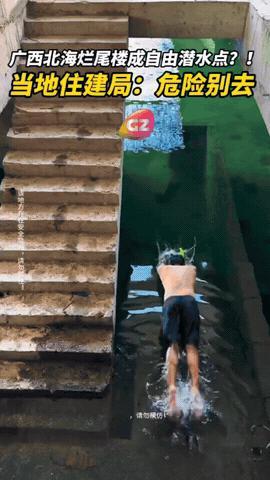 心不是一般的大!广西北海,有一片烂尾楼群因为长期停工闲置,低洼的地方积了挺深的水,一群自由潜水爱好者竟然把这当成了新奇的“打卡胜地”。 他们找到这些废弃楼房的楼梯口,一个猛子就扎进那绿幽幽的水里,还有人拍视频上传到社交平台,标注着“烂尾楼潜水”。 从视频里能看到,有人甚至穿过了墙体上的缺口。 不过,这地方看着刺激,实则危机四伏。 当地住房和城乡建设局的工作人员赶紧出来提醒:这可是个“未报先建”的项目,本身就不合规,里头水坑情况复杂,贸然下去很容易发生溺水事故! 他们明确说了,现场有裸露的钢筋和尖锐的石块,安全隐患非常大。 烂尾楼的水下环境根本不是普通的游泳池或者开放水域能比的。 水里可能藏着建筑垃圾、尖锐的钢筋头,水体浑浊看不清,一旦被缠住或者划伤,后果不堪设想。 为了在社交媒体上博取关注,弄点与众不同的“大片”,有些人愣是敢往这种明显危险的地方钻。 这种对潜在危险的漠视,不仅是对自己生命不负责,也可能给看到视频的其他人做出错误示范,觉得这事儿“很酷”、“可以模仿”。 不过话说回来,虽然产权或责任关系可能复杂,但确保这种楼不成为公共安全陷阱,是相关方面无法回避的责任。 不能总等到出了事,才想起来要“加强监管”!
