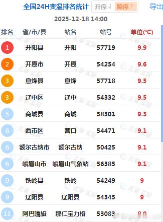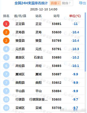 【气温起伏】今天我国多地气温上升,贵州、内蒙古中东部、东北三省升温明显。贵州开阳升9.9℃、辽宁开原升9.6℃、贵州西峰升9.5℃、辽宁辽中升9.5℃、河南商城升9.3℃,为14时全国升温前5站点。今天新疆北部因为冷空气+降雪影响,河北因为大雾遮挡光照影响,出现了明显降温。14时河北站点包揽了降温榜前10(新疆阿勒泰北部降温剧烈的是区域自动站,因此没有上榜)——正定降11℃、灵寿降10.4℃、赞皇降10.4℃、元氏降10.3℃、石家庄降10.2℃排名前5。从14时气温图看,石家庄-保定-北京一带,形成了一个低温区。
