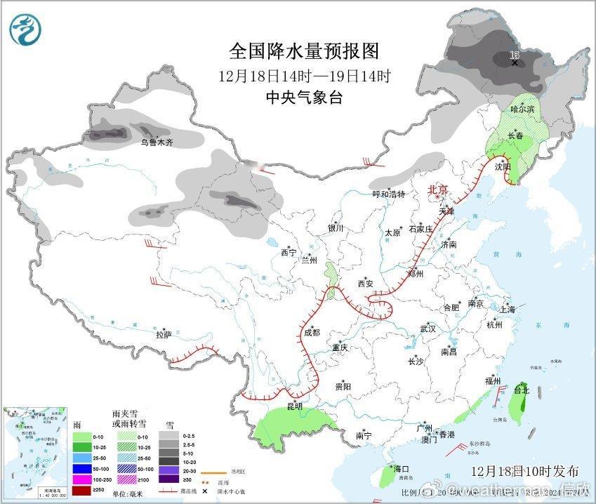 【雨雪】今天08-14时,降雨主要在云南,降雪主要在新疆。导致降水的南北两个高空槽都东移,今天下午到明天中午,新疆天山沿线有强降雪的同时,内蒙古东部和黑龙江的降雪也会逐渐发展增多,部分地区有大雪-暴雪。云南的降雨总体减弱,海南、广东东部沿海和福建南部沿海、台湾将有降雨。