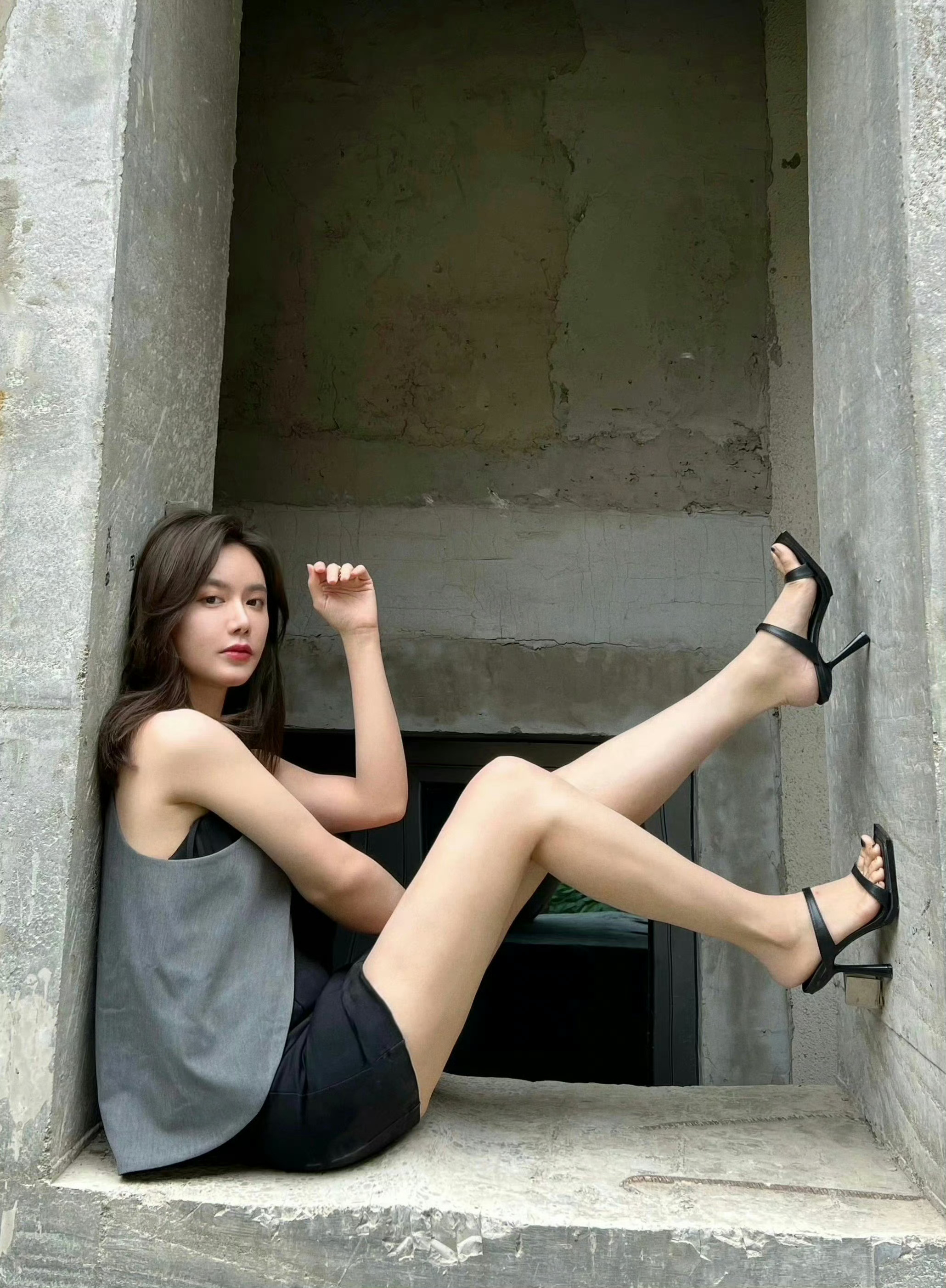 吴艳妮在成都穿着短裤大腿看起来很粗壮,表情自信又张扬