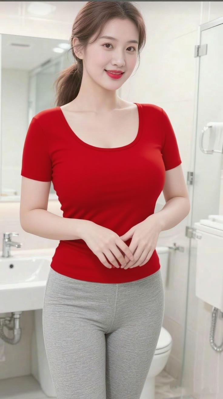 《晨室里的红意》 晨间的柔光漫过浴室的白瓷墙,落在她松松束起的发尾上。正红色的衣装衬得眉目舒展,像把破晓时的淡霞揉进了日常衣料,妥帖又明亮。 浅灰裤装裹着松弛的身形,她交握双手的姿态里,是不加修饰的舒展——没有刻意的精致,是晨起时刻自然的鲜活,像洗漱台旁刚接好的温水,温软又妥帖。 好看从不是刻意的塑造,是日常里漫开的自在。像推开房门时撞见的风,不浓烈,却让人心里一暖:原来生活的温柔,就藏在这样的平常光景里。 日常松弛感 生活轻暖