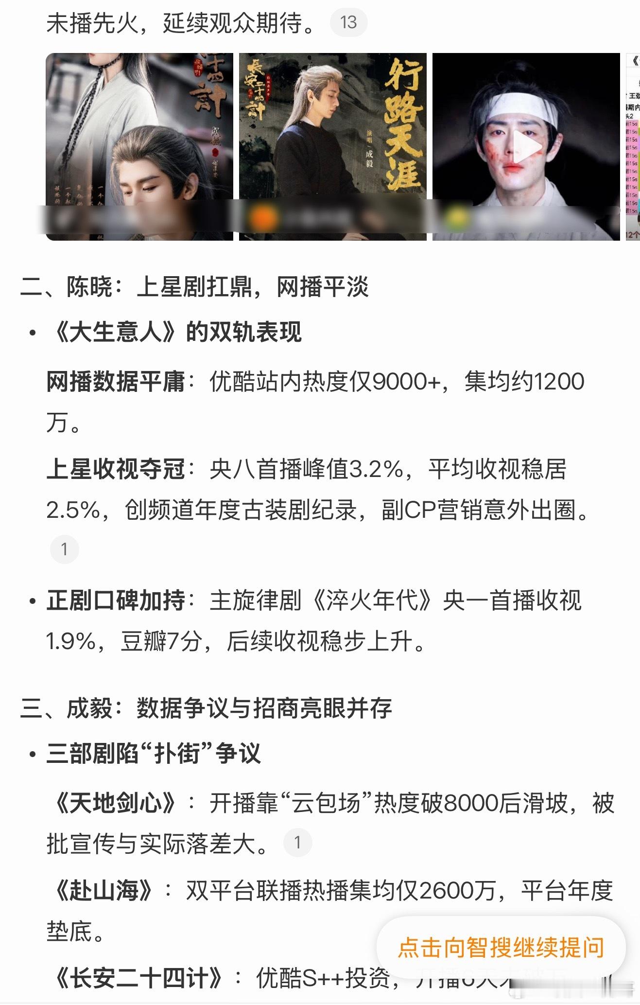 肖战成毅陈晓 2025大男主剧成绩单微博智搜的解答