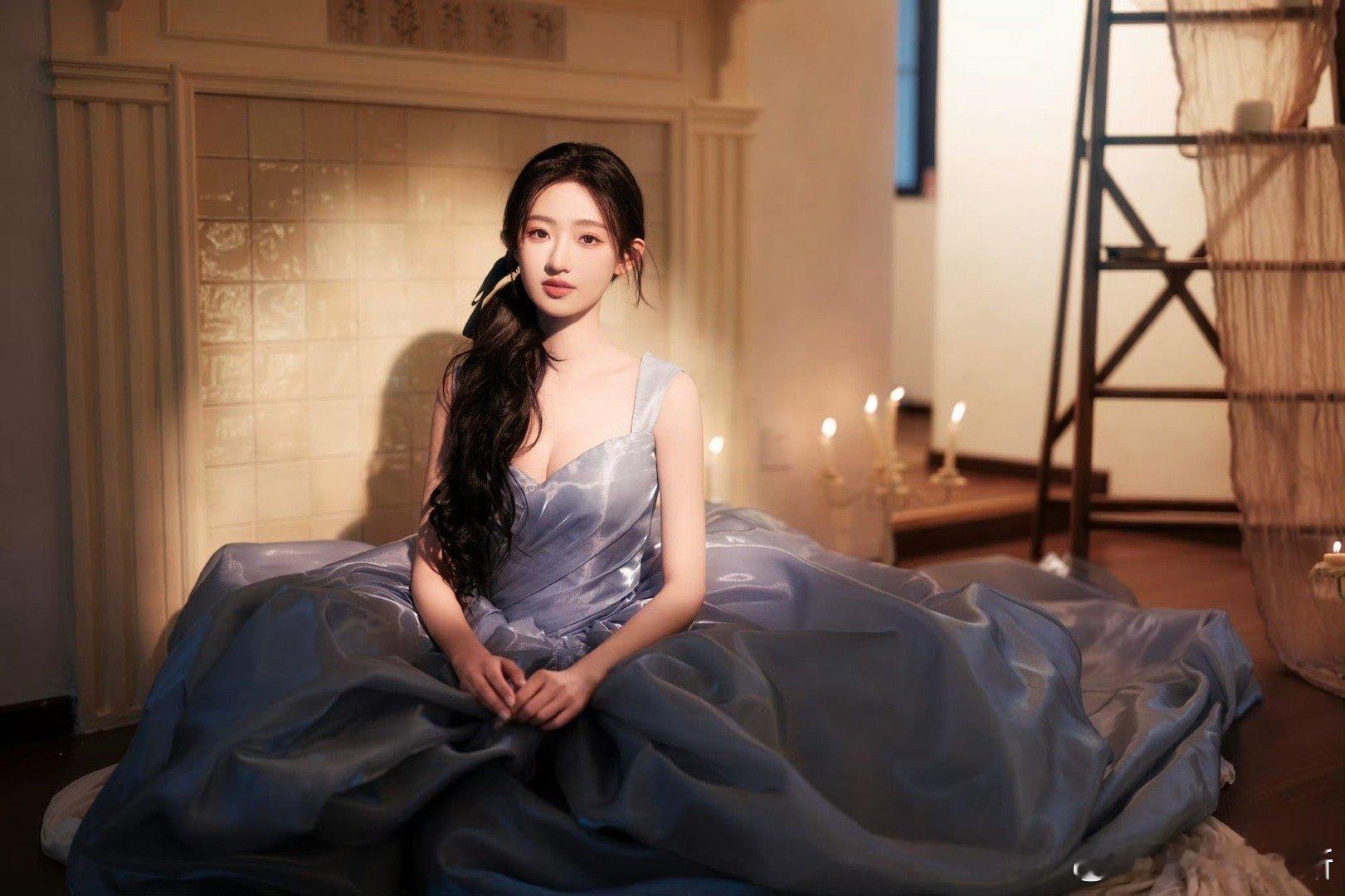 杨雨潼黑发辛德瑞拉 光追着她发丝流淌成银河,蓝裙是夜色提炼的琉璃。辛德瑞拉若生在东方的城堡,就该是这样——矜贵里透着灵动的黑发公主。
