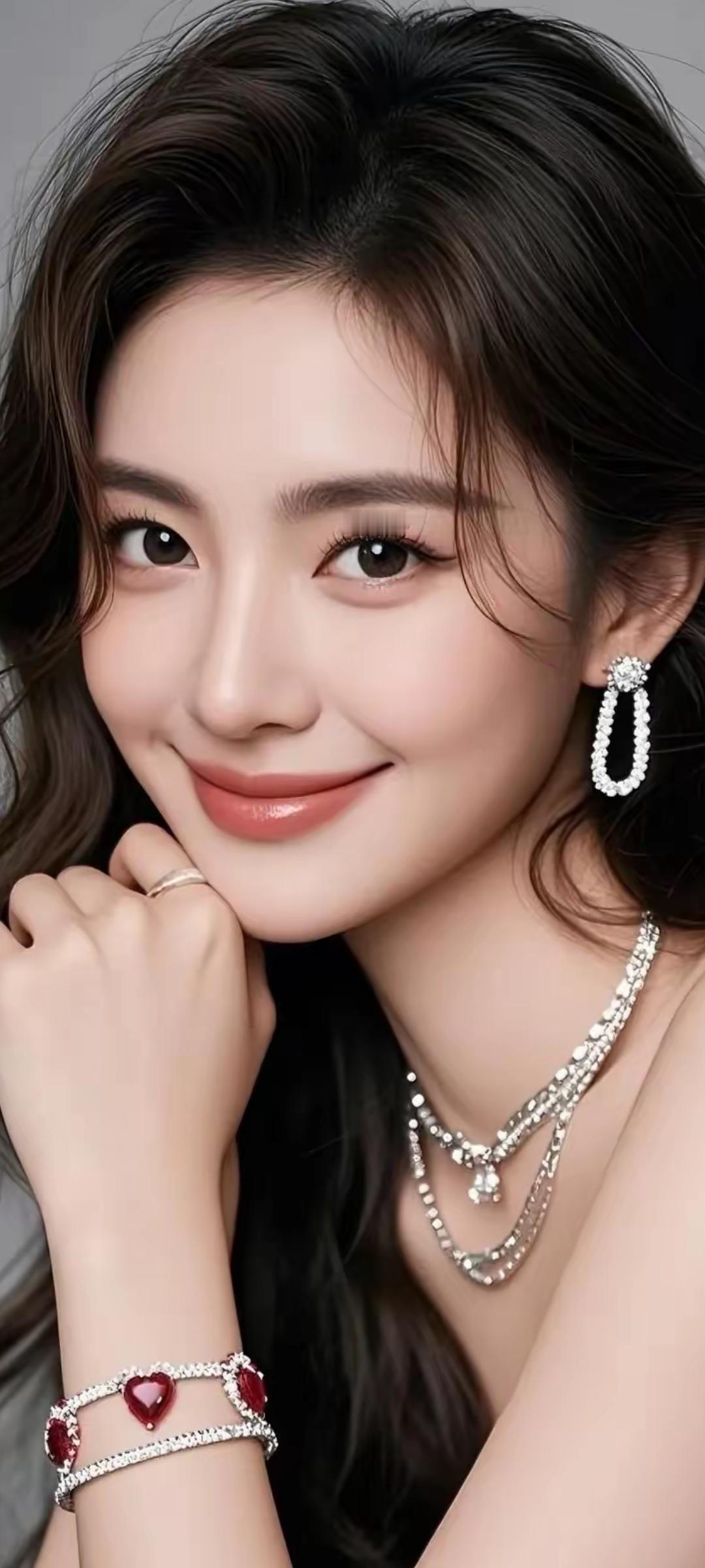 优雅黑发美人,闪耀珠宝配饰,尽显高贵气质。