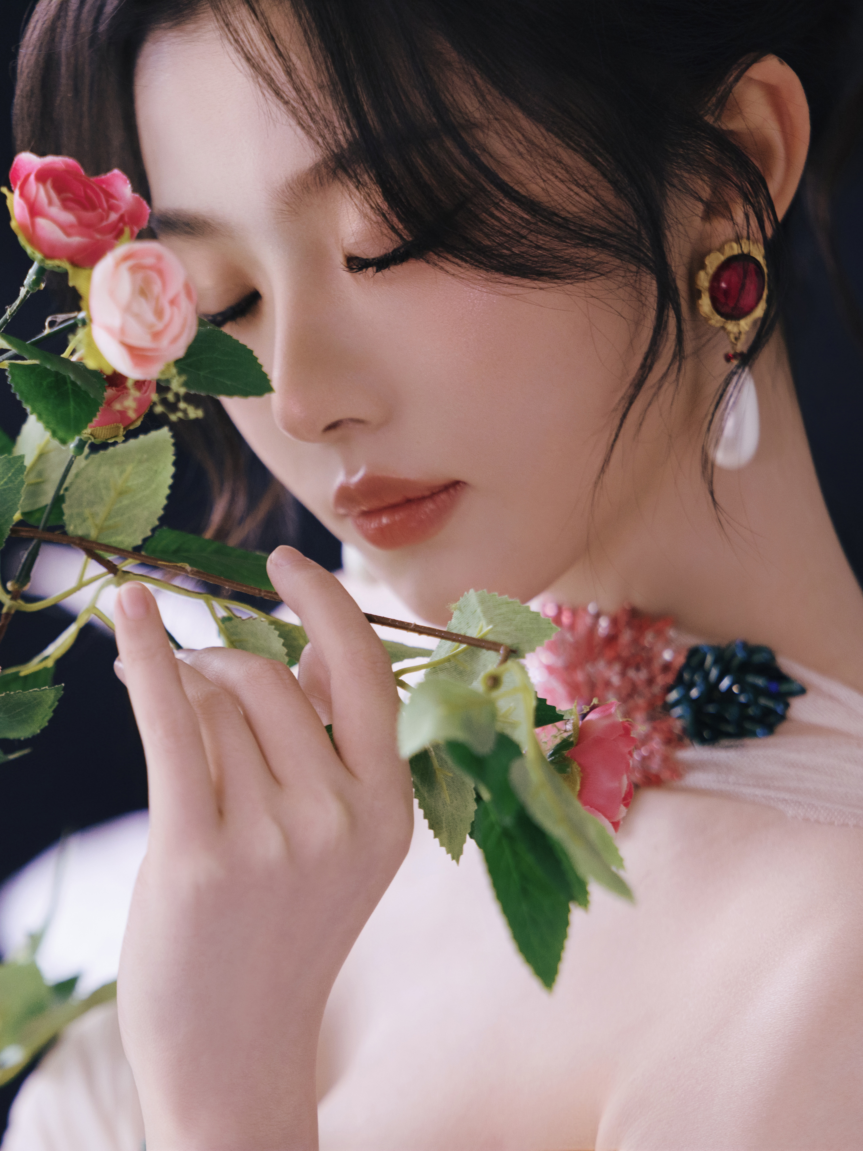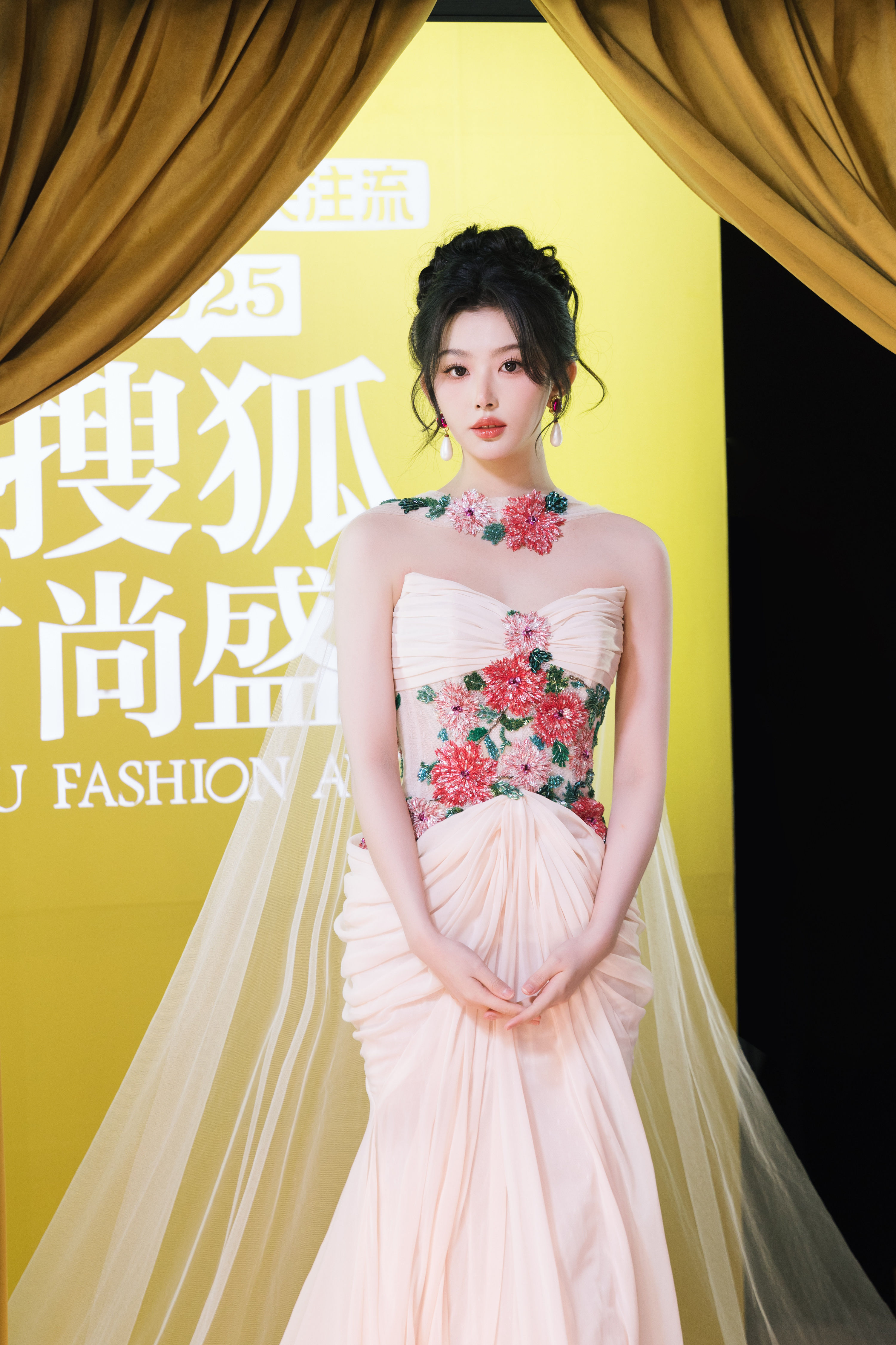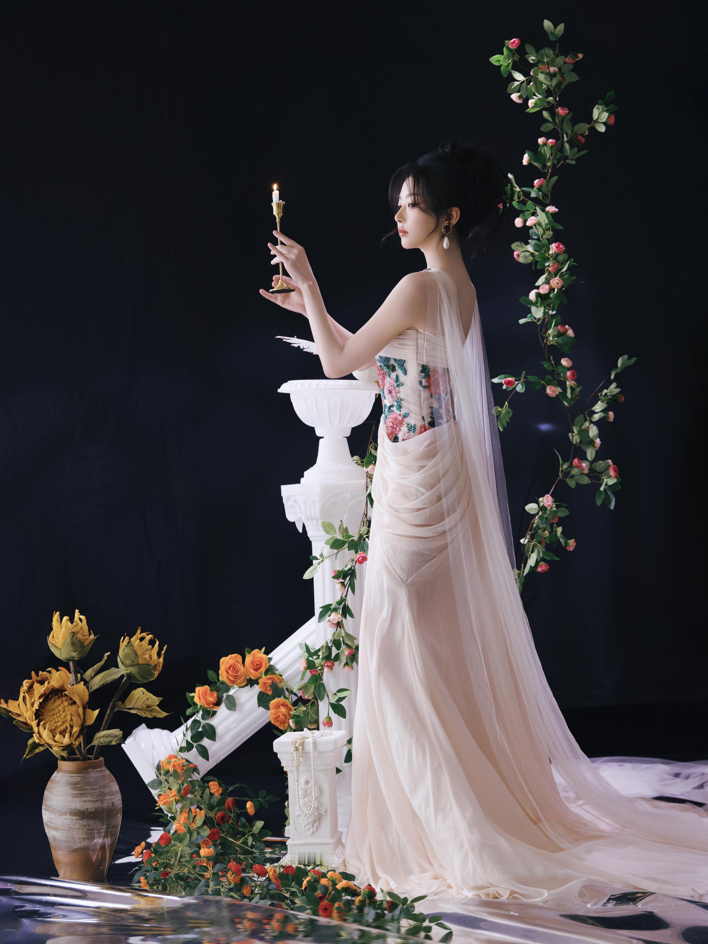 孔雪儿 米白抹胸礼裙缀繁花刺绣,颈间花簇配饰呼应设计,浪漫又矜贵。孔雪儿 演更坏的坏人 孔雪儿 媚眼抛给我看