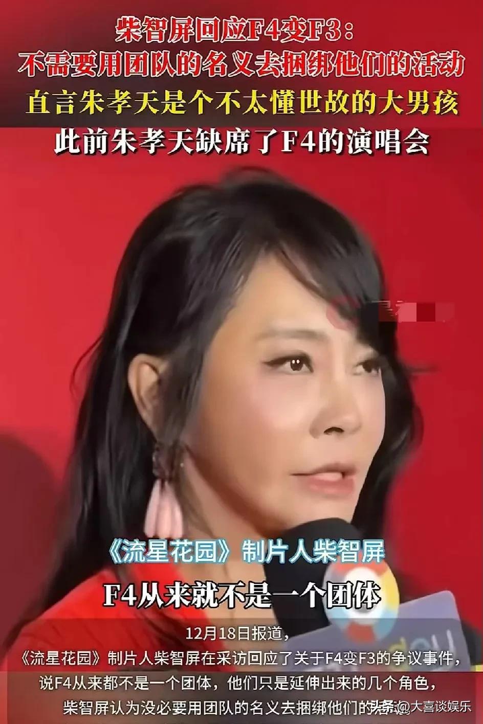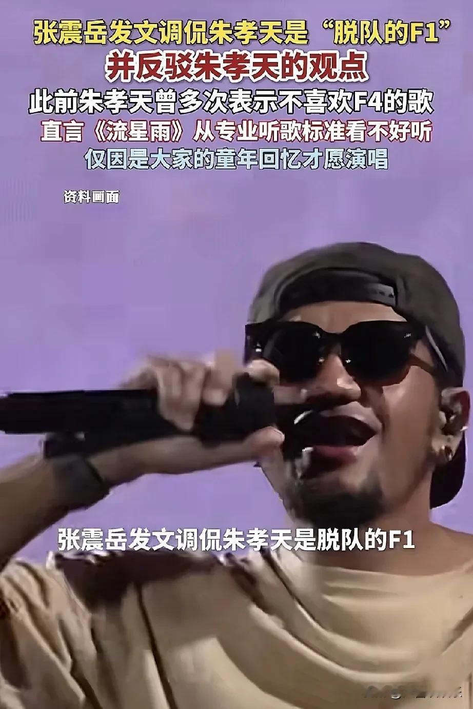 朱孝天彻底把自己娱乐圈的道路走到头了,张震岳都忍不住出来怼他了。 身为F4的一员,还总埋汰《流星雨》难听,不符合他的音乐审美。 张震岳都看不过去了,直接发文证明《流星雨》是首好歌,以专业创作视角指出《流星雨》副歌前两小节和弦设计精妙,肯定了这首歌价值,还嘲讽朱孝天是脱队的F1。 张震岳是创作型歌手,他说的话很有分量,要知道他可是曾经和李宗盛、周华健、罗大佑组过乐队的人。 朱孝天发视频指责被F4踢出局后,《流星花园》制作人柴智屏也发表声明,称F4从来都不是一个团体,少了一个人毫无影响。 当年F4是她一手捧红的,对每个人的脾气秉性都了如指掌,他说朱孝天太冲动,就像是个长不大的大男孩。 言外之意,都46岁的人了,还耍小孩子脾气,离了你地球照样转。 这回好了,朱孝天彻底把人得罪了个遍,以后自求多福吧。