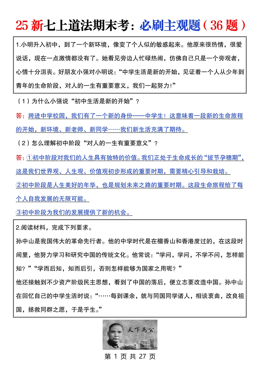 七上语文期末重点知识及题型‼️吃透就是黑马