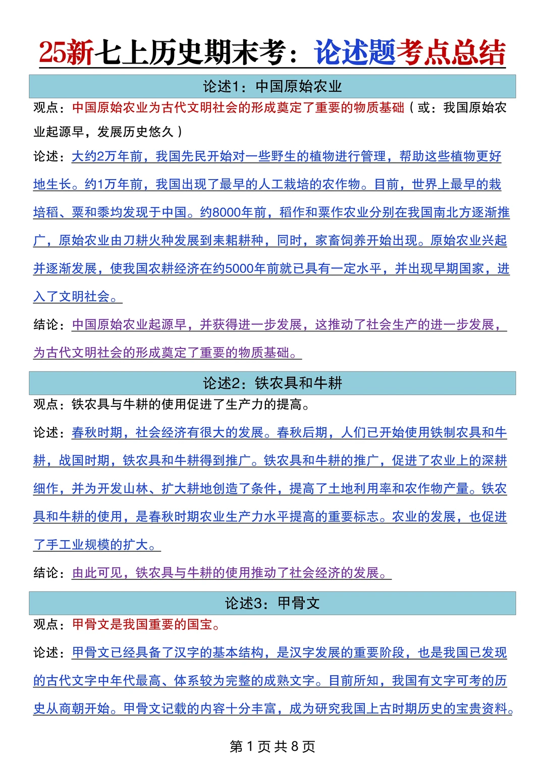 家长收藏孩子受益 知识点总结 七年级 历史 必背知识点 初中学习方法 提高孩子学习成绩 期末考试 学霸秘籍 学渣逆袭指南