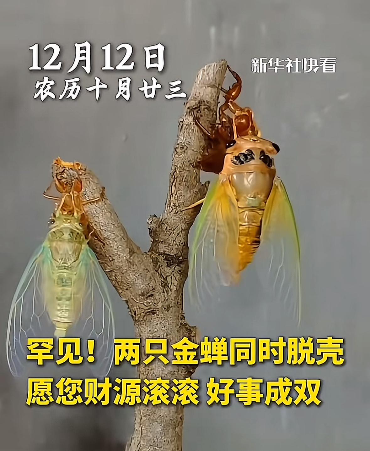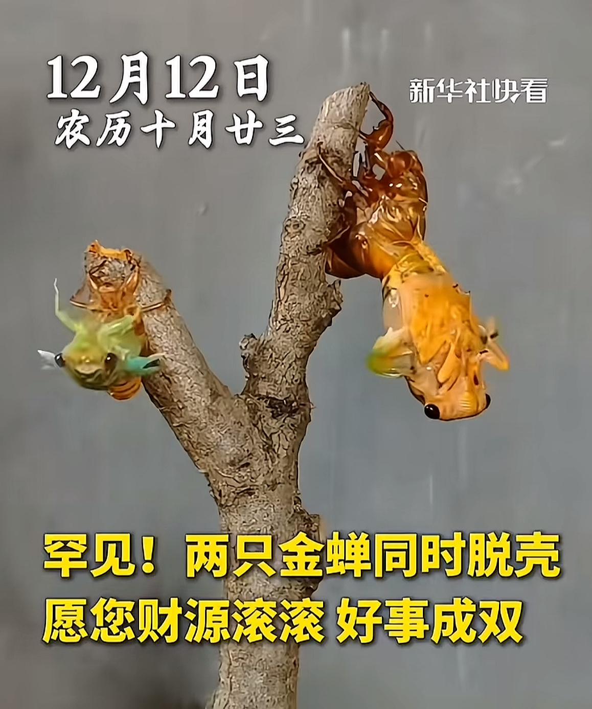 罕见!两只金蝉同时脱壳,愿您财源滚滚好事成双🙏 这画面简直太炸裂了!我活了半辈子,见过单只脱壳的,没见过这种“双黄蛋”啊!更离谱的是,现在可是12月啊朋友们,外面冷得能冻掉下巴,它们俩倒好,在这寒冬腊月里搞起了“生命大合唱”,这反差感,绝了! 现在网上都在传,说看到金蝉脱壳是大吉大利,看到两只那是“好事成双”!我觉得吧,这运气不是天上掉下来的,而是它们自己“拼”出来的。 家人们,刷到这的都是有缘人!愿咱们都能像这对“神蝉”一样,脱去一身的霉运和烦恼,翅膀硬了,就能飞向更广阔的天空! 评论区留下一句“好运连连”,把这份福气接住!