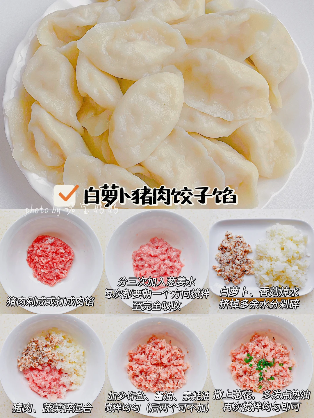 姐妹们,大家好呀![派对R] 冬至马上就要到了,我们一起包水饺吧!今天分享四款专属于宝宝的饺子,不同肉菜搭配,营养又美味😋款款都好吃!从调馅到擀皮再到包饺子,每一步都给大家安排明白!姐妹们,快来试试吧! ✅西葫芦鲜虾饺 ✅时蔬菜鳕鱼肠 ✅胡萝卜牛肉饺 ✅白萝卜猪肉饺 👩🍳具体做法和用量,请参考以上图片文字,如有疑问欢迎评论区留言交流~~~