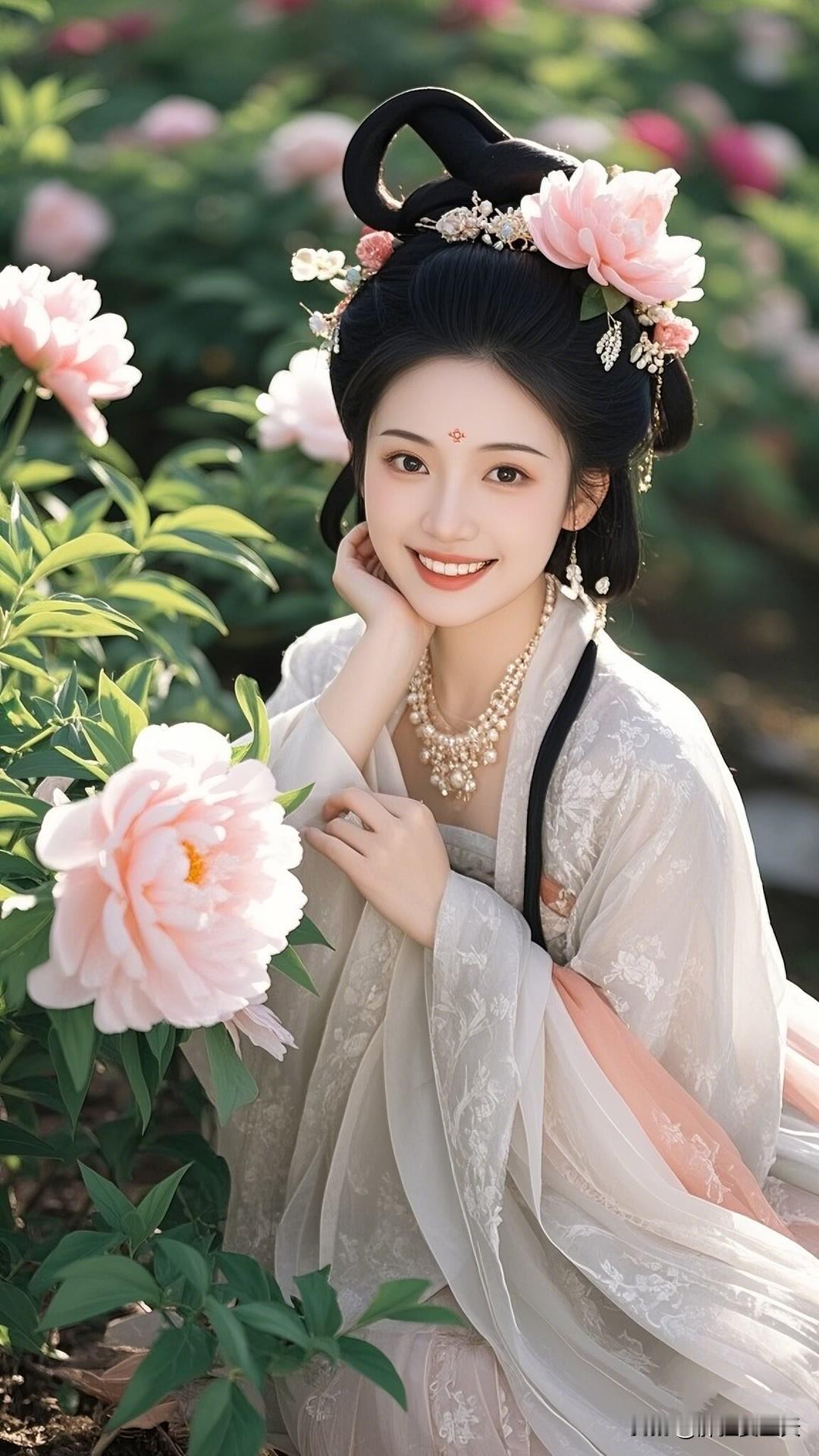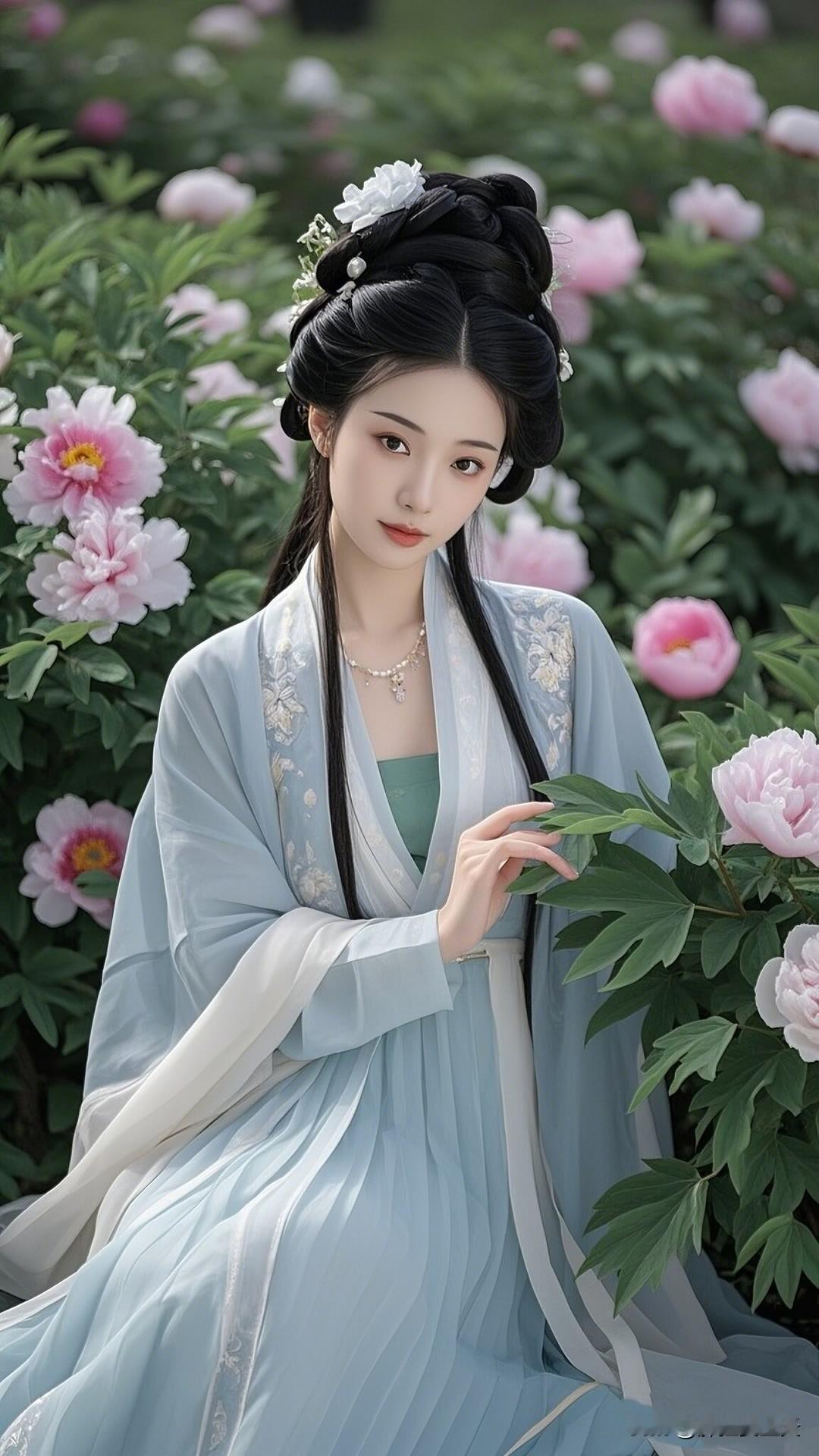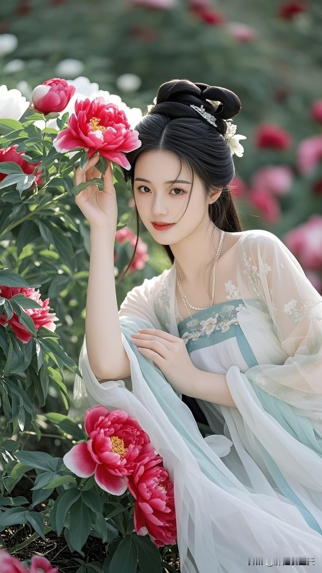 春日杏花盛开时,汉服佳人笑颜展。绿衣白花相映衬,古典韵味盈心间。美女人像群 高清