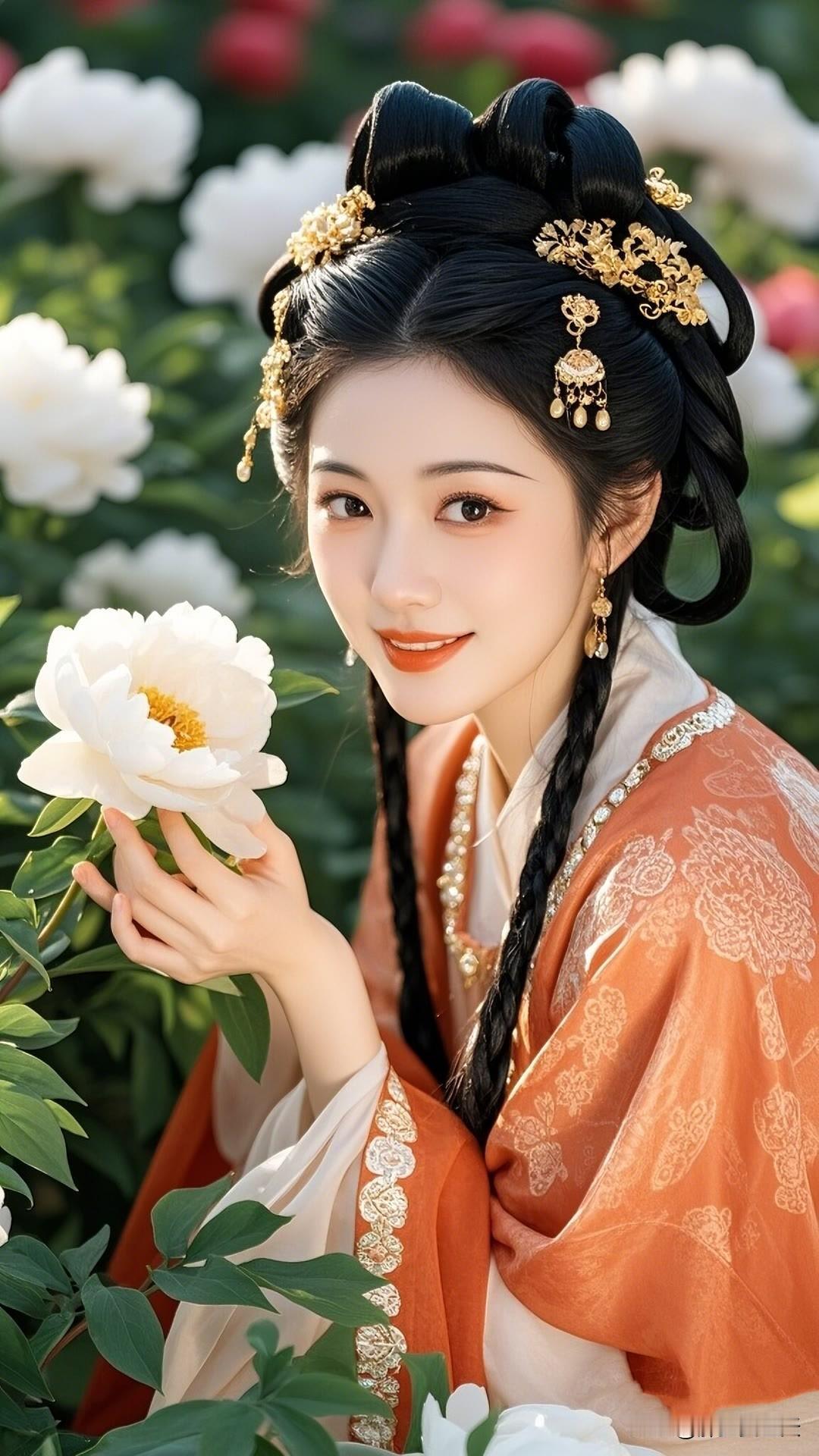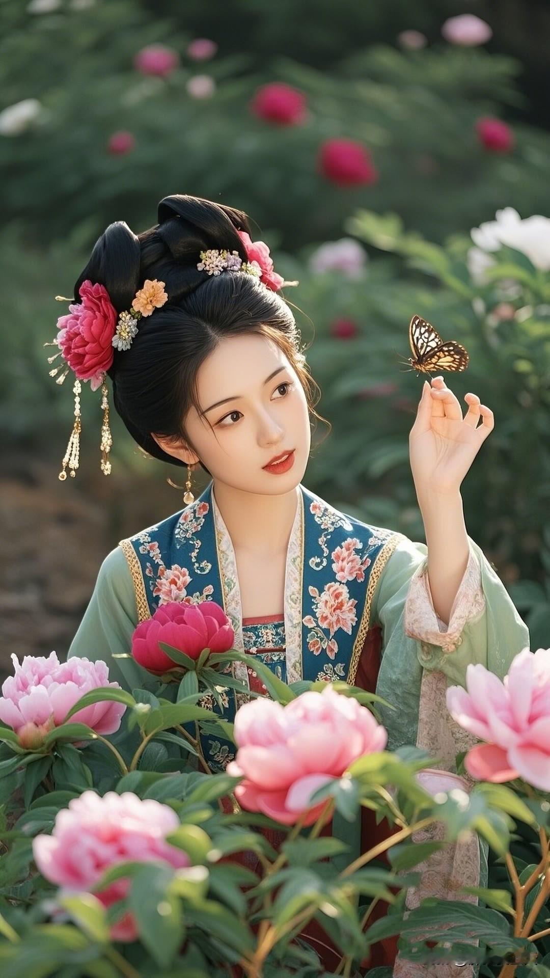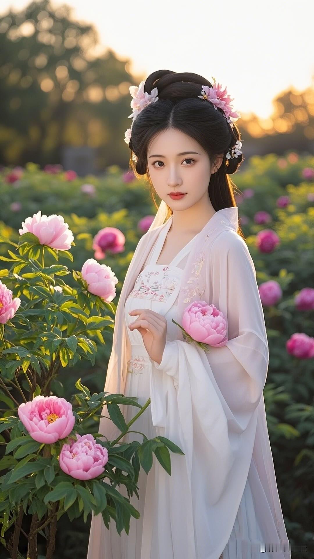 春日杏花盛开时,汉服佳人笑颜展。绿衣白花相映衬,古典韵味盈心间。美女人像群 高清
