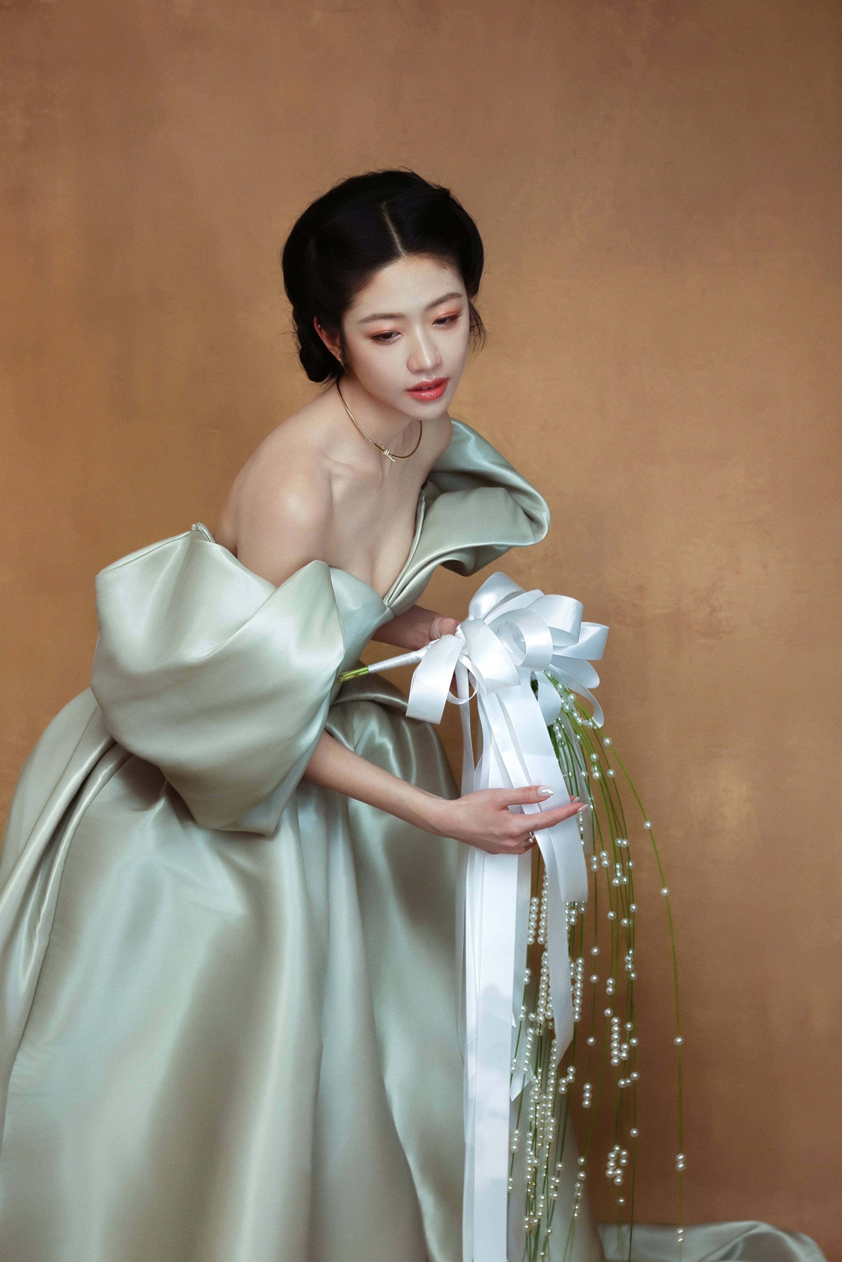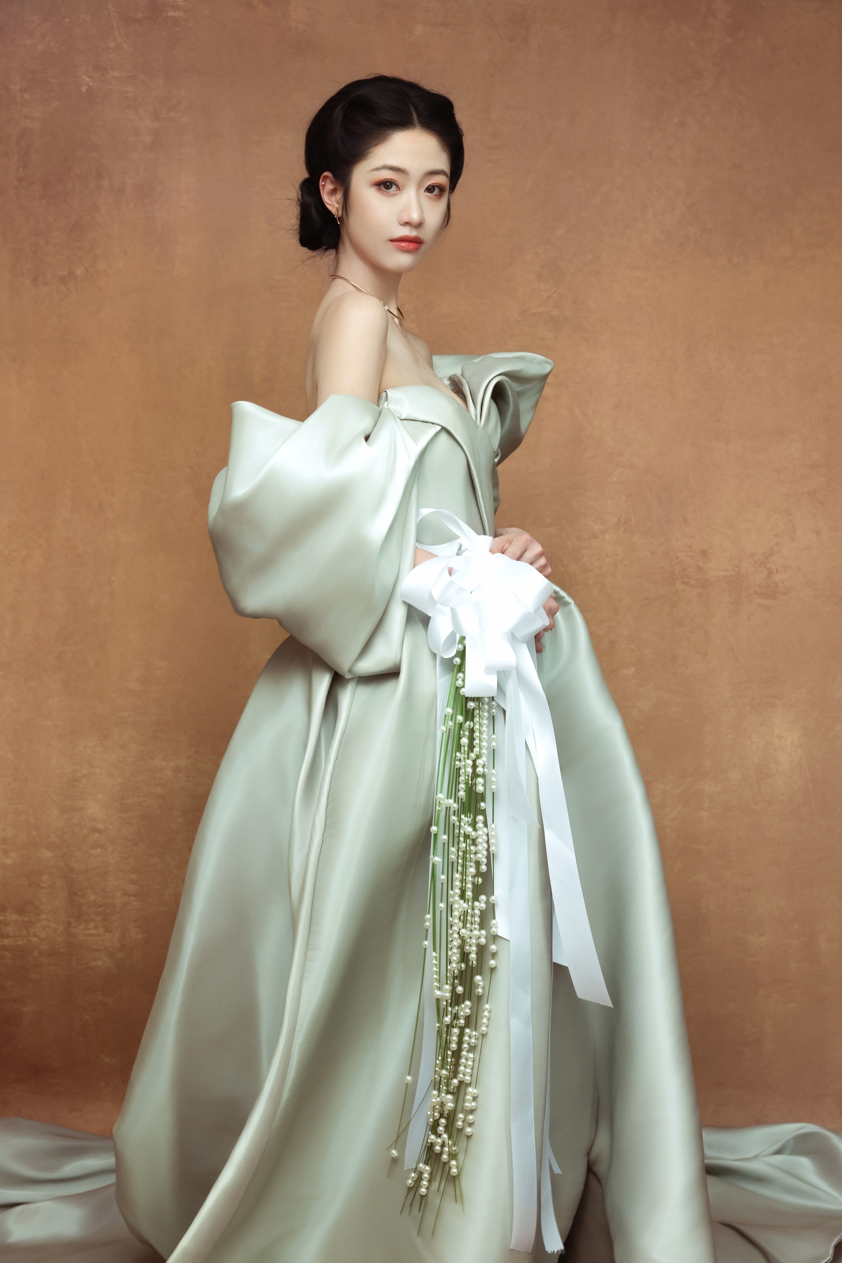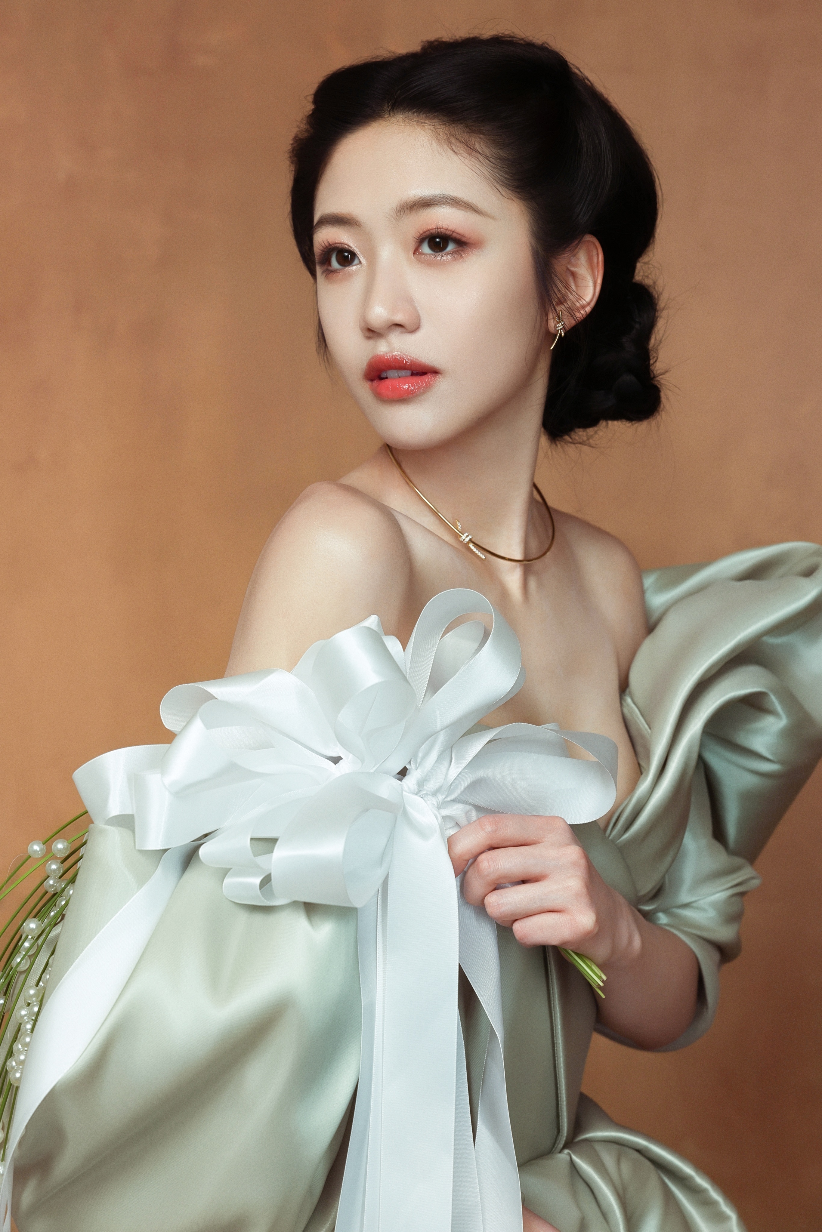 向涵之 浅薄荷绿礼裙的褶皱揉着冷调的光,一字肩的设计勾勒出肩颈与胸线的柔美弧度,蓬松的袖摆似揉碎的云朵。 向涵之汤唯是妈妈是女儿