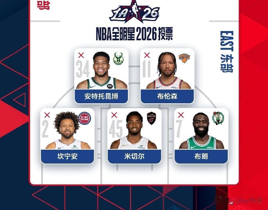 不出意外,东部全明星首发就是这五人! NBA全明星投票已经开启,相比于西部,东部的全明星首发竞争要小得多。按照本赛季表现,加上球员的人气,这五名球员大概率将当选东部全明星首发阵容,他们分别为坎宁安、米切尔、布朗、布伦森、字母哥。 坎宁安打出了职业生涯巅峰的一个赛季,作为持球大核心的他带领活塞队牢牢占据东部第一的位置,数据+战绩双丰收,无疑将拿下一个首发阵容席位。在塔图姆伤缺的情况下,布朗带领凯尔特人杀入东部前列,成为了波士顿的新宠儿。米切尔打法非常吸睛,得分能力出色,身体素质炸裂,人气一直很高。布伦森有纽约大都市撑腰,又刚刚拿下NBA杯MVP,入选全明星首发已无悬念。字母哥就更不用说了,他大概率将蝉联票王,是入选东部全明星首发最稳的球员。 上赛季东部全明星首发阵容为:字母哥、塔图姆、唐斯、布伦森、米切尔。