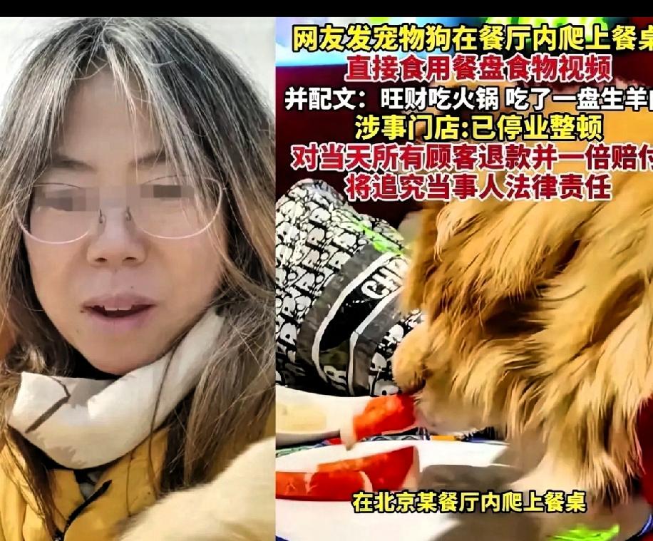 这是膈应谁呢? 12月16日晚一女子带狗在南门涮肉就餐时让狗上桌舔食生羊肉卷并拍视频炫耀,这女子真的是刷新了人类的底线,带着狗进涮肉店,让狗上桌,把公共盘子舔的蹭亮,还发网上求夸奖,这不是蠢,是纯粹的坏,这事办的太没有分寸了,公共餐具给狗用,完全不顾其他食客的健康和感受,纯纯的自私缺德。 涉事门店,已停业整顿,对当天所有的顾客退款并已赔一倍的赔付,将追究当事人的法律责任。 其实商家和女子都有责任,就不该让宠物进入餐厅,最大的责任是狗主人!