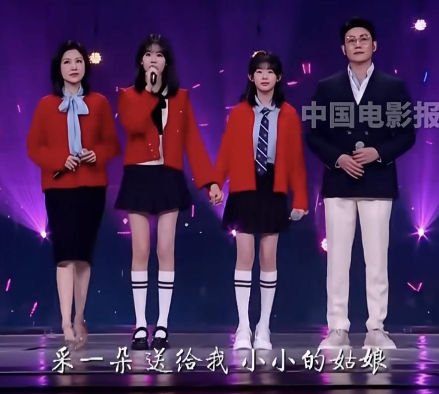 终于知道陆毅鲍蕾一家四口为什么那么幸福了, 不是因为有钱, 也不是因为有名气,而是他们这一家子任何时候都在相互鼓励和支持彼此。 这次电影之夜,陆毅和鲍蕾带着两个女儿演唱《萱草花》,和姐姐贝儿相比,妹妹舞台经验不足,显得有点紧张。 所以在妹妹演唱前,爸爸陆毅自然的搂了她肩膀一下鼓励她。 后面换站位的时候 ,妈妈鲍蕾用胳膊轻轻碰了妹妹一下,提醒妹妹唱。 贝儿也在唱完自己的歌词时悄悄捏了一下妹妹的手提醒,与此同时,妈妈也抬胳膊提醒妹妹了。 爸爸,妈妈,姐姐都在舞台上用自己的方式守护小妹妹,真的好有爱。