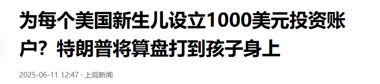 特朗普出绝招了,估计全球人都没人想过,他竟然要给美国的新生儿每人发1000美元的股票,他这个做法很新鲜,也很稀奇,但也不失为一个好方法,我认为他这个方法是有效的。 今年6月份,特朗普再一次抛出了让人意想不到的政策提议,这次的目标直接对准了美国的新生儿。 放眼全球,还没有哪个国家有过类似的尝试,给每一个刚出生的孩子发股票,这样的想法确实新鲜又稀奇,却也藏着贴合现实的考量。 了解特朗普政策风格的人知道,他向来喜欢推出具有颠覆性的举措,此前就曾签署行政令推动成立美国主权财富基金,明确提出要让基金惠及所有美国人,还计划吸纳专业力量提供投资建议。 而给新生儿发股票的提议,似乎正是这一思路的延伸,把对全民的普惠落实到了生命初始阶段。 这种方式跳出了传统福利补贴的框架,不再是简单的资金发放,而是让新生儿从一开始就成为经济发展的参与者和受益者。 从实际效果来看,这一做法的有效性值得肯定,它不仅能让普通家庭的孩子获得一份长期的财富保障,减少成长过程中的经济压力,还能借助资本市场的长期增值效应,让这份初始投入不断积累。 更重要的是,这一政策能拉近普通民众与资本市场的距离,此前特朗普曾因在社交媒体喊话影响股市引发争议,而这样的普惠性股票发放,相当于让最弱势的群体也能共享资本市场的红利,平衡不同群体间的财富差距。 当然,这样的政策需要完善的制度支撑,比如股票的管理、变现的条件等细节都需要明确,但不能否认其背后的创新逻辑。 相较于传统福利政策,这种方式更具长远性,把短期的福利转化为长期的资产,既符合特朗普一贯的经济政策思路,也为民生保障提供了新的方向,不得不说,这确实是一个兼顾创新性与实用性的有效方法。 以上都是个人观点,对此您有什么不同的看法,可以在评论区留言讨论!!!