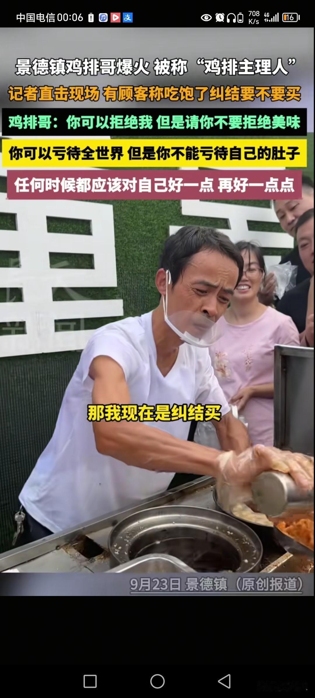 深圳烤鸡少年能火多久。 会不会跟鸡排哥一样。 红了一个月,就尘埃落定。 烤鸡少年,没成名周围人会去吃。 成名后,要排到几百号,周围人去吃觉得等太久了。 鸡排哥网络,玩的太溜了,很多人都觉得鸡排哥属于圆滑精明。 两者一个是少年,一个是深耕久场摊主。 但深圳小陈年龄虽小。 社会阅历,已经打败9成普通人。 思维超过一大半30岁的男人,小陈知道自己爱好什么,思维清晰。 流量不扶庸人,就像写头条也是一样。 不养闲人,如果你一月写几篇就想赚几条烟,赚盒化妆品,那是不可能的事。 天掉下钱来,都要早点起来捡。