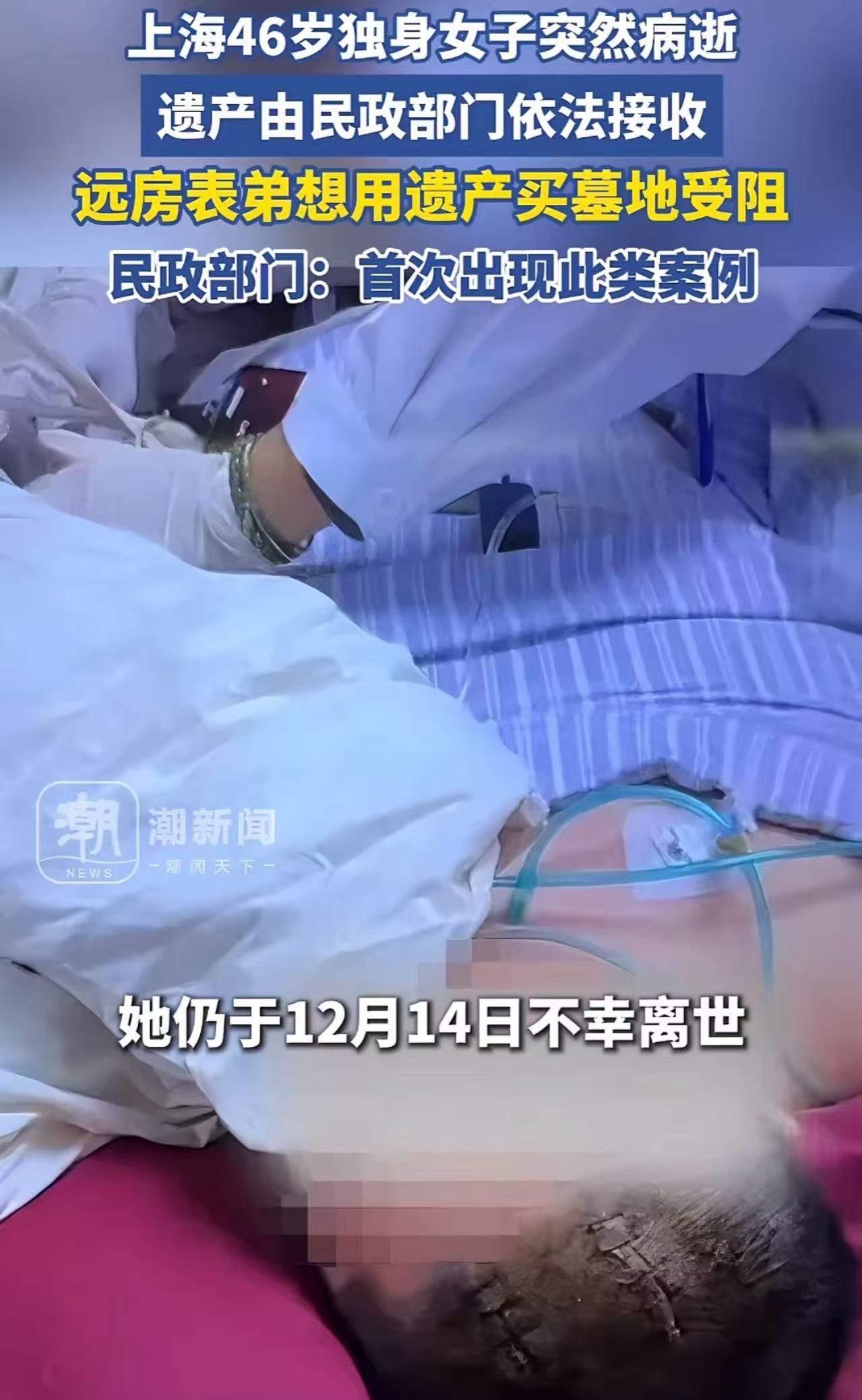 看完你还敢单身吗?这不仅仅是一则新闻,更是一面折射出社会、家庭、个人价值观的镜子。上海一位46岁的独身女子突然离世,留下的遗产却成为一场“权利与情感”的拉锯战。她的遗产由民政部门依法接收,远在外地的表弟却试图用这笔钱为她买个墓地,却遭遇了前所未有的阻碍。民政部门回应:这是首次出现此类案件,正在研究解决方案。 这背后,隐藏着什么样的社会现象?又反映出怎样的人性深层次的矛盾?有人说:这是制度的僵化,是对个人意愿的漠视;有人则认为:这是法律的底线,是对公共资源的保护。而我们,是否也在无形中被这些“制度”所绑架,失去了对个体生命价值的真正尊重? 让我们换个角度想一想。那位女子,她选择了单身,没有依靠家庭,没有子女陪伴,她用自己的方式生活、工作,甚至在生命的最后一刻,都没有让亲人担忧。她的财产,理应属于她自己,理应由她自己决定去向。可现实却告诉我们:在某些制度和观念的束缚下,个人的财产似乎变成了“公共资源”,变成了“无法自主”的财产。 网友们的反应也异常激烈:“自己的钱,给自己买个墓地都不允许吗?”“这不是在剥夺一个人的最后尊严吗?”“难道我们对生命的尊重,只到生前?死后呢?”这些声音,折射出的是普通人对“个人自主权”的渴望,也反映出我们这个社会在传统与现代、法律与人情之间的挣扎。 其实,这件事情的核心,远不止一场遗产的争夺。它揭示了一个深层次的问题:在快速变化的社会背景下,我们是否还在坚持“以人为本”的价值观?我们是否还记得,每个人的生命都是独一无二的,每个人都应有尊严地走完自己的人生旅程?当制度变得僵硬,规则变得冷漠,我们是否也在逐渐失去对个体的关怀和理解? 这起事件,或许只是冰山一角,但它引发的思考,却值得我们每一个人深思。我们希望,未来的社会,能在制度的框架内,更加人性化,尊重每一个生命的尊严。让每个人都能在生命的最后一刻,拥有自己应有的尊重和温暖。 生命无常,制度应有温度。只有这样,我们才能真正实现“以人为本”的社会理想。希望这起事件,能成为推动制度改革的一个契机,也希望每一个人都能在生命的每一个阶段,感受到被尊重、被理解的温暖。 这,不仅仅是一场关于遗产的争夺,更是一场关于尊重与人性的深刻对话。你,怎么看?中年婚恋真相