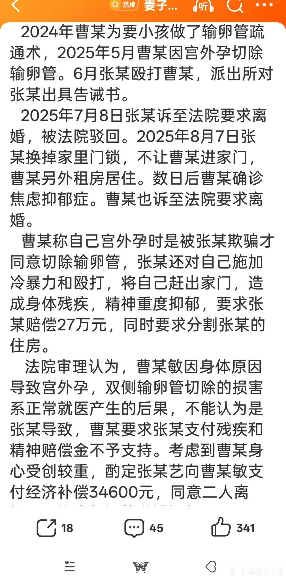 妻子切除输卵管几天后丈夫提离婚这女的好惨,身体受损,还被打被赶出去被离婚,最后就带着三万块钱离婚………这以后可怎么办啊?