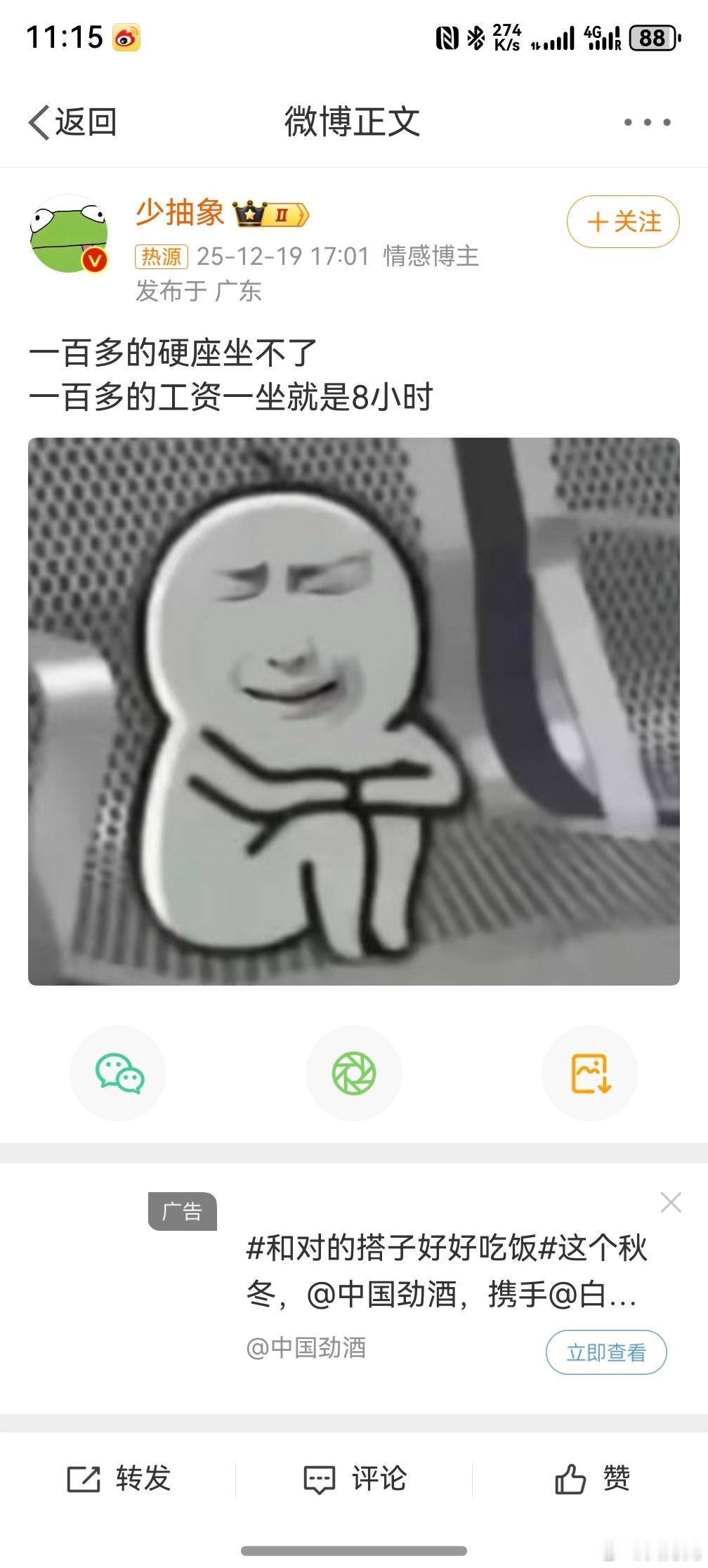 一百多的硬座坐不了 ,天呐,这也太扎心了,这么算下来,买什么都感觉不贵了,吃什么苦也不感觉累了。