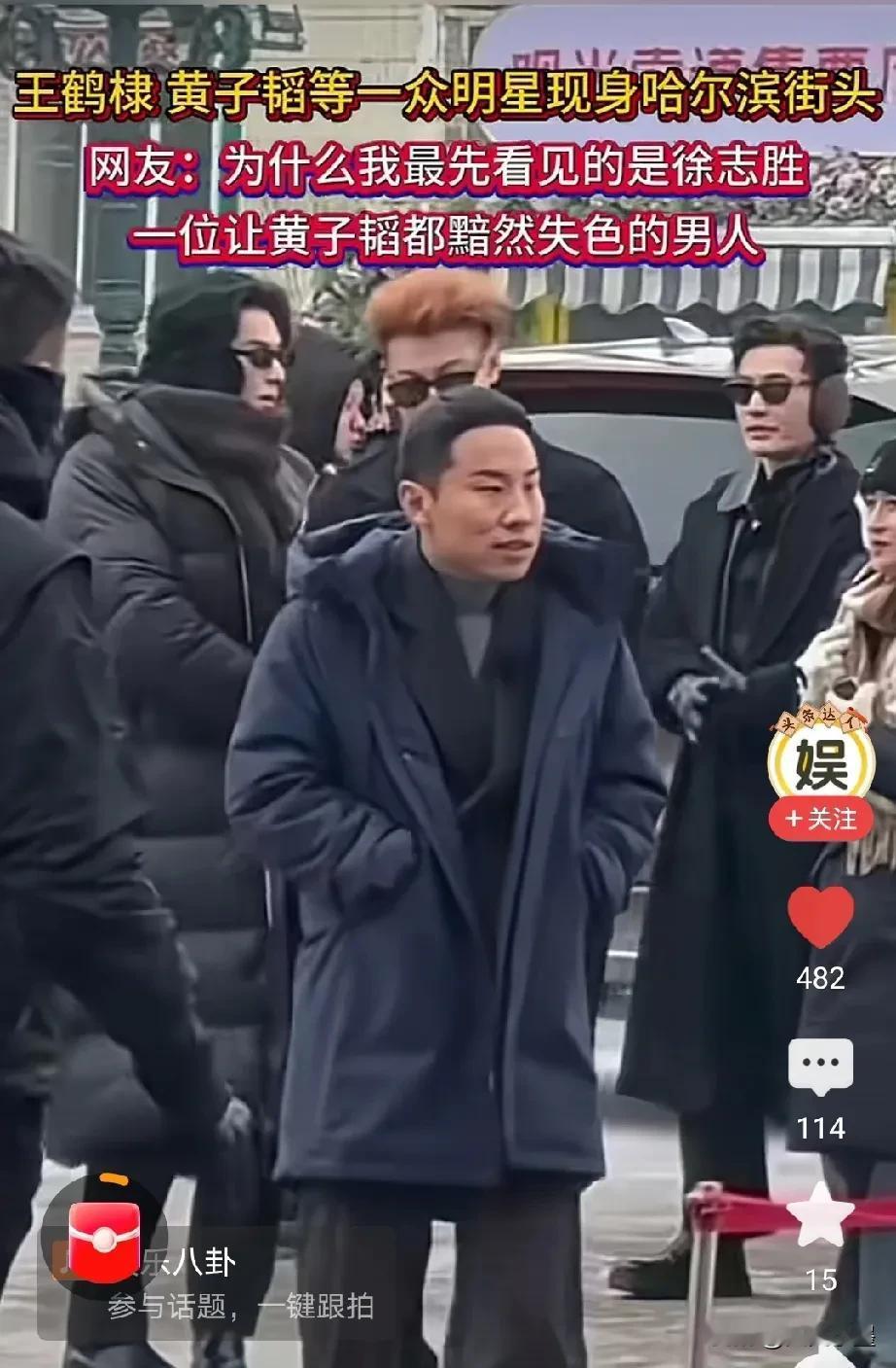 不愧是你啊志胜!一个敢不戴墨镜把脸全部露出来的男人! 一行人下车后,志胜身穿蓝色大袄,双手插兜,眼神坚定,面对镜头无所畏惧的走在了黄晓明、黄子韬、王鹤棣三位大帅哥的前面,也许这是梁静茹给他的勇气吧![捂脸] 这几年,志胜上过春晚,参加过脱口秀,演过电影,多点开花,在文艺圈可谓混的风生水起,他已经用实力证明了自己的喜剧天分。 其实,《宇宙闪烁请注意》节目组请徐志胜来参加是有原因的,志胜虽然颜值不耐看,但他是整个节目的搞笑担当,他身上的幽默细胞这些人加起来可能都不够吧,有了他可以更好的活跃团队氛围,让队员们更加放松和谐,节目效果比较好,容易获得更多人关注! 徐志胜 黄晓明