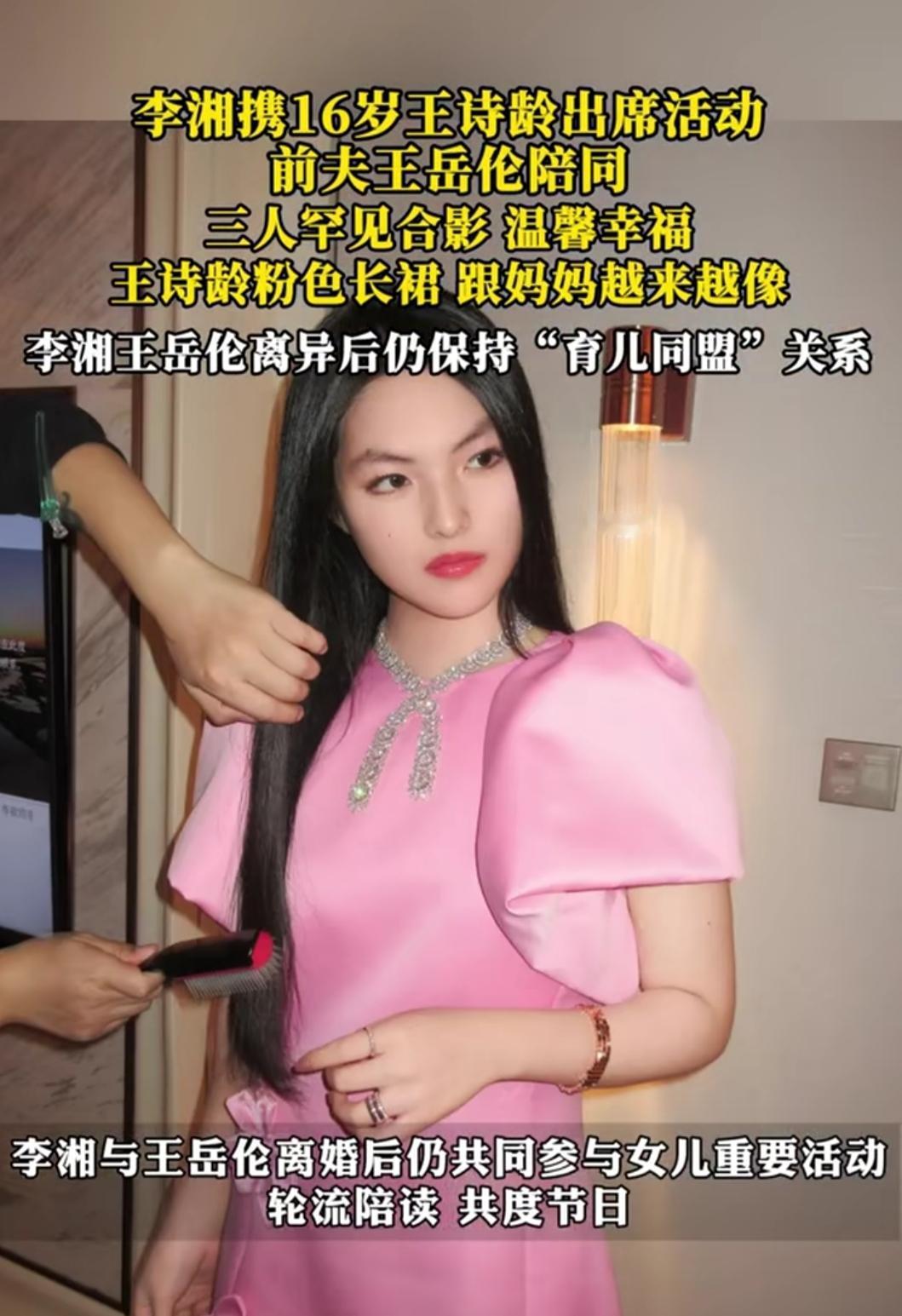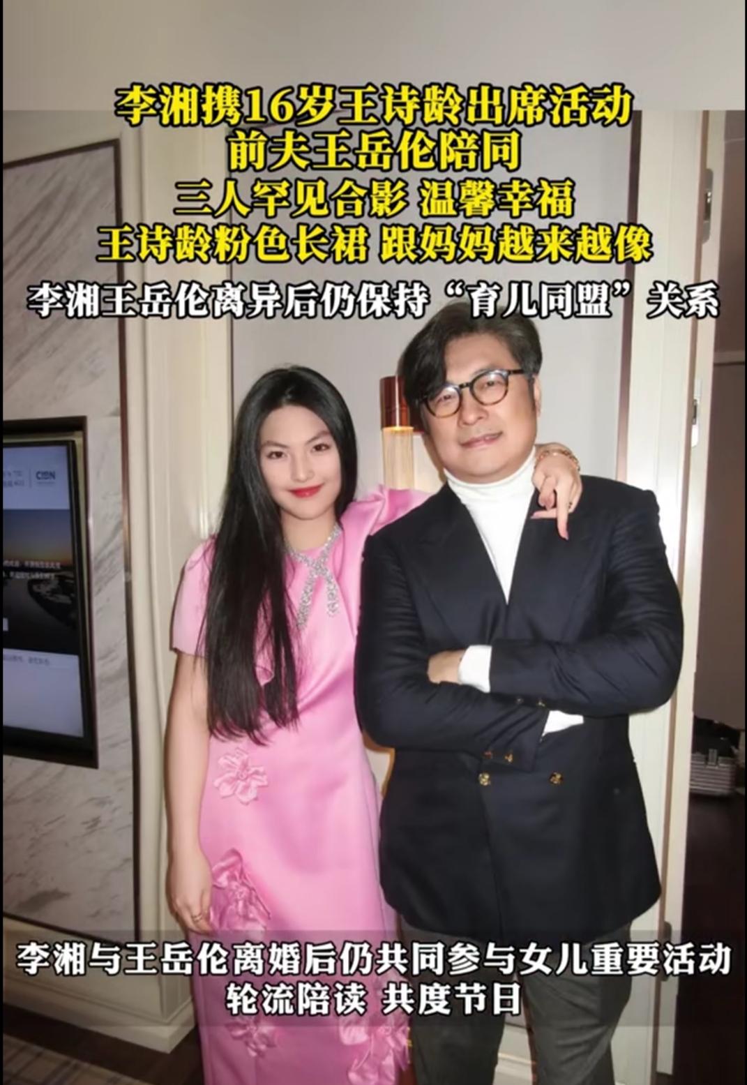 刷到李湘和王岳伦带着王诗龄同框的照片时,突然就被戳中了。离婚多年的两人,不仅没有反目成仇,还能一起陪16岁的女儿出席活动,这份默契和体面,在娱乐圈里真的少见。 16岁的王诗龄穿粉色丝绒长裙,戴钻石项链,眉眼间复刻了李湘的精致,站在父母中间落落大方。还记得当年《爸爸去哪儿》里那个奶声奶气的小团子,如今长成了亭亭玉立的少女,而父母始终用共同的爱托着她的成长。 很多人觉得离婚就是家庭的破碎,可李湘和王岳伦却证明,婚姻的形式会变,但父母对孩子的爱可以不变。他们轮流陪读、共度节日,把“育儿同盟”做到了极致。对孩子来说,最好的成长环境从不是完整的婚姻,而是不缺席的父爱母爱。 愿所有分开的父母,都能懂这份“爱与体面”,让孩子在温暖里长大。