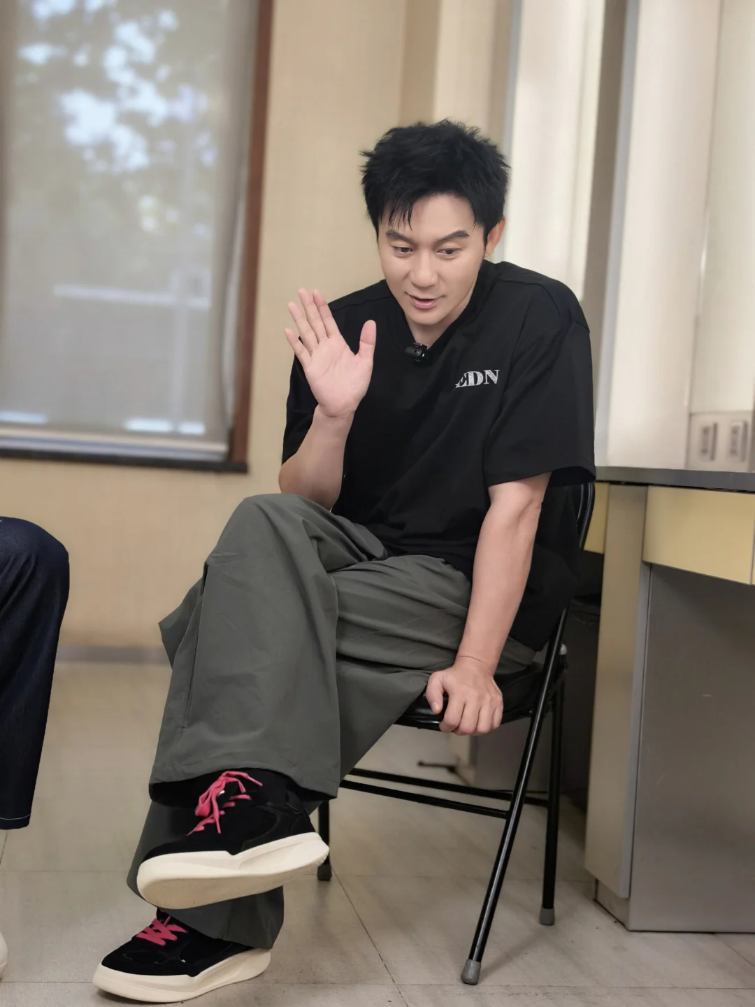 纯分享! 李晨私服穿搭更新🆕 简约黑色t恤➕休闲工装裤➕黑色小圆鞋👟 松弛感拿捏的正好! 注意到他脚上的这双鞋,黑色鞋面搭配粉色鞋带好有调性,不易撞款还百搭,时髦感又提升一个度,不错!