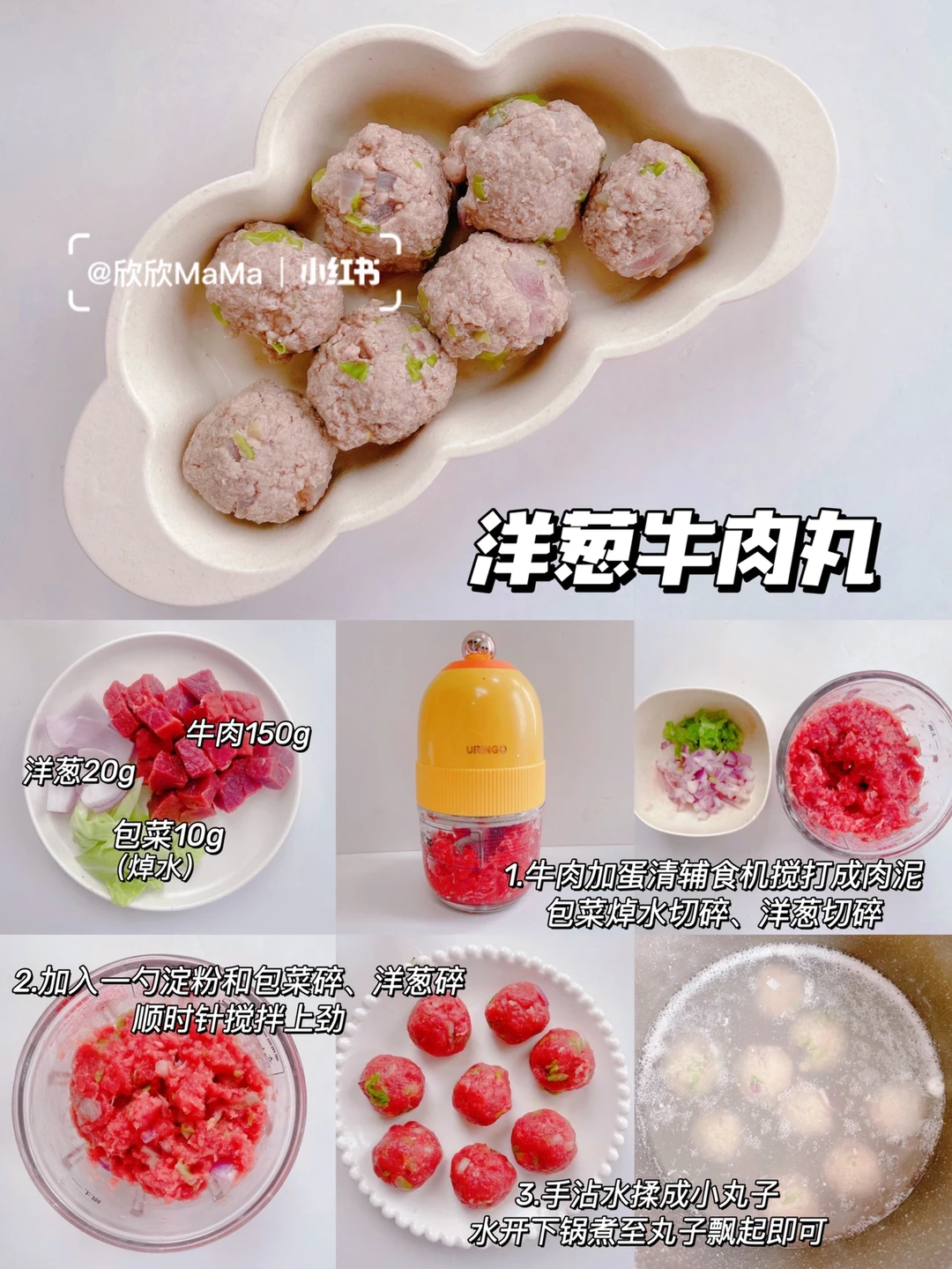 1⃣牛肉加蛋清辅食机搅打成肉泥,