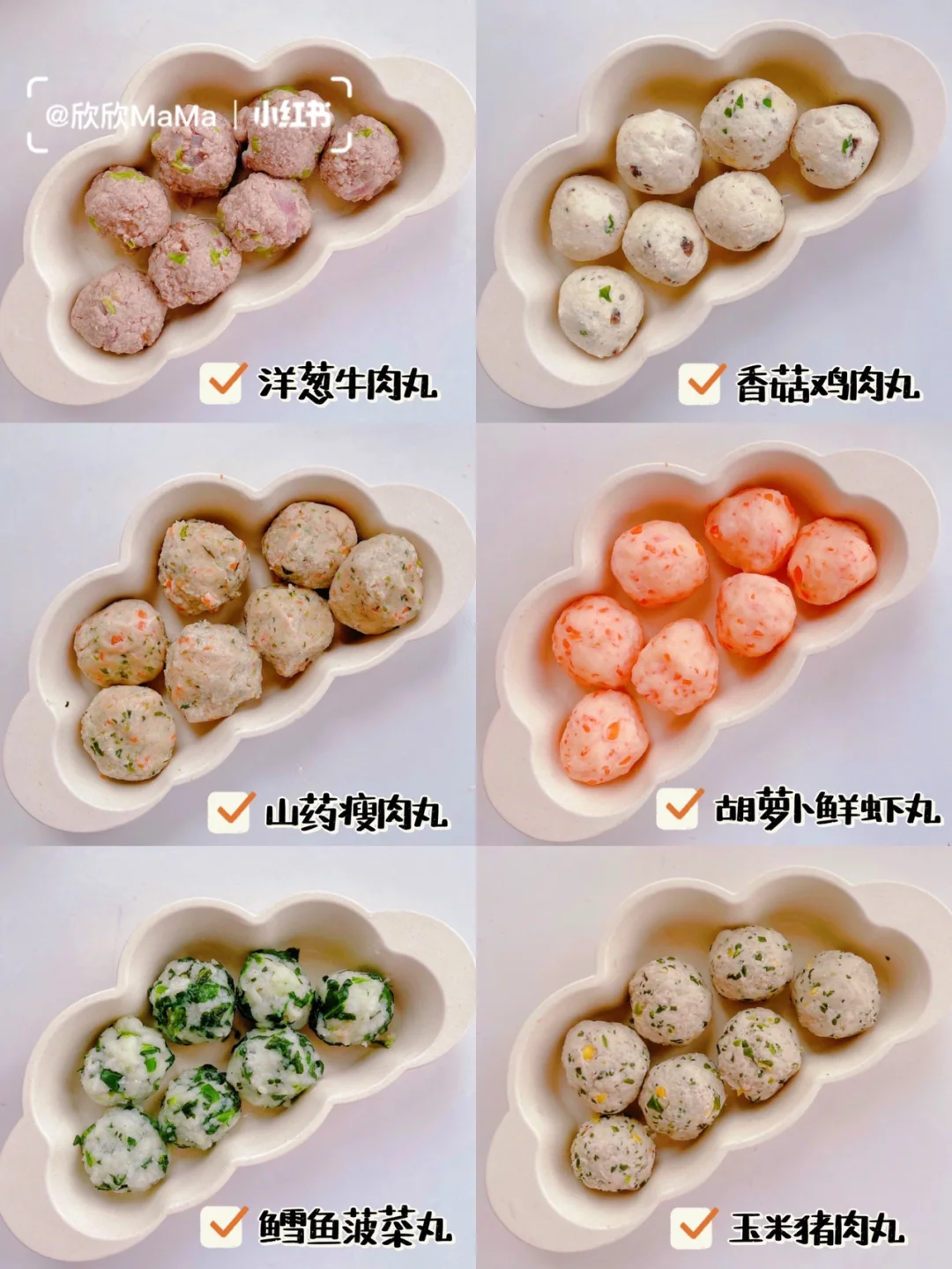 今天分享的6道手工丸子🍡食谱,只要用辅食机就能完成,做法十分简单,蔬菜搭配肉完美营养组合,营养美味,补钙补铁,口感软糯Q弹、不干不柴、还能给宝宝当手指食物,锻炼宝宝咀嚼能力,多出来的丸子可以放入冰箱冷冻保存一个星期,要吃的时候加热即可,真的是太方便啦