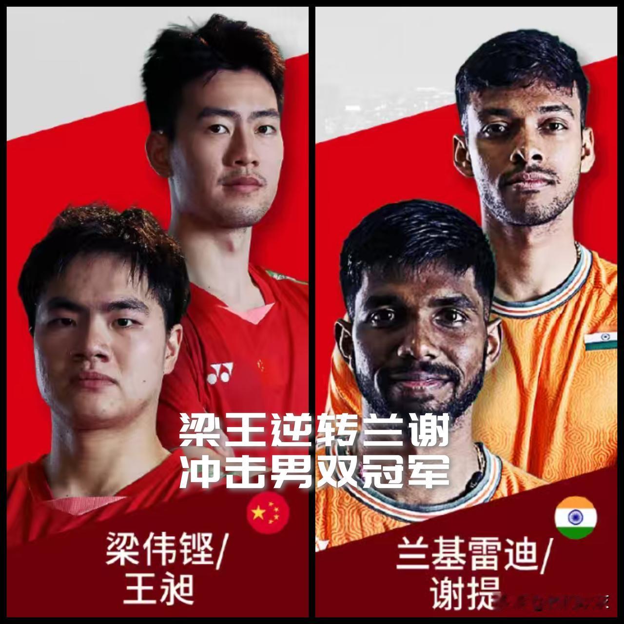 【梁王逆转兰谢!冲刺男双冠军!】 2025世界羽联年终总决赛男双半决赛次场,也是本次羽联总决赛半决赛的收官战。 国羽组合梁伟铿/王昶以10-21先丢一局,以21-17、21-13连扳两局逆转取胜杀进决赛。 男双决赛,梁王组合将对阵韩国组合金元昊/徐承宰,期待他们夺得冠军。