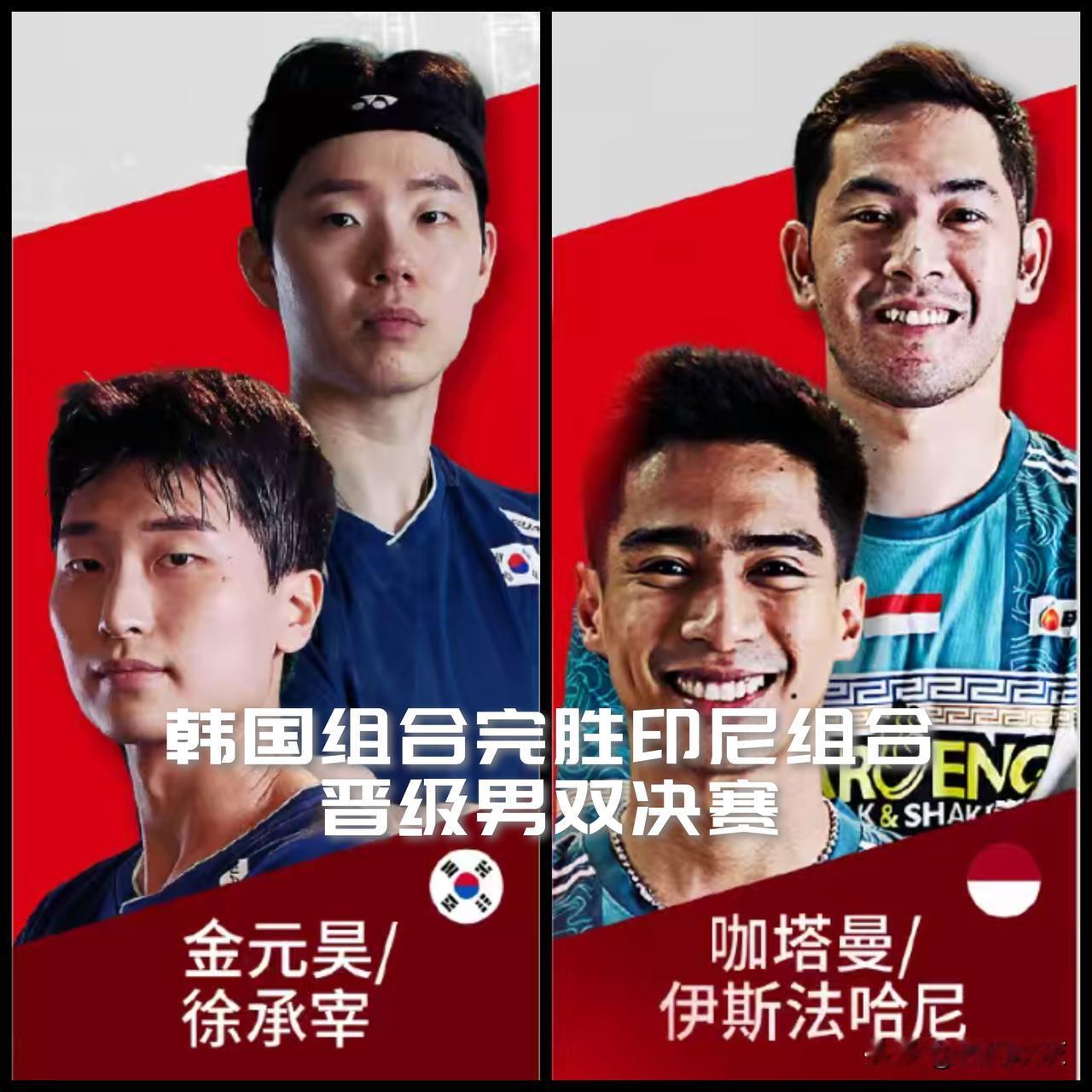 【韩国组合完胜印尼组合晋级男双决赛!】 2025世界羽联年终总决赛男双半决赛首场,韩国组合金元昊/徐承宰以21-9、21-11直落两局击败印尼组合咖塔曼/伊斯法哈尼晋级决赛。 男双决赛,中韩争冠!