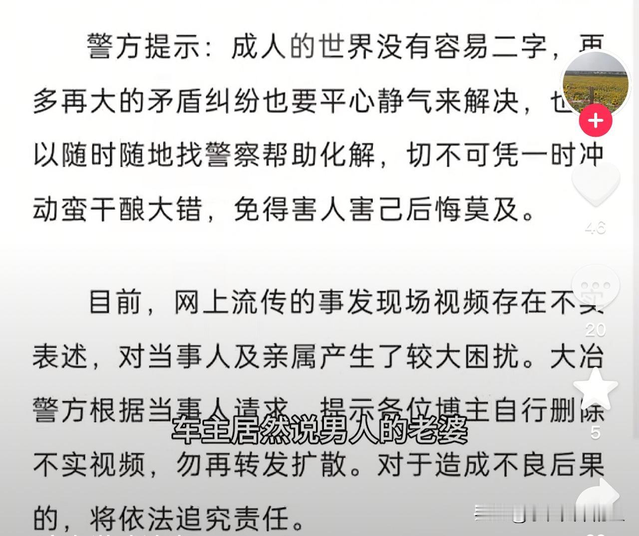 真相大白了!湖北大冶带着女儿砸车的男子,砸的是他老婆的车,目前已经和好。 当天,两口子发生矛盾,男的骑电动车带着女儿在一个路口把开车的妻子截停,二话不说,拿起砖头就往车玻璃上砸,吓得孩子哇哇大哭,小女孩还上前想阻止爸爸。 可男子那时候情绪彻底失控,根本没管孩子,不一会就把车玻璃砸了个大洞。 司机倒是挺冷静的,她没敢下车,而是倒车躲避,男子不依不饶,追上去接着砸,女儿全程目睹了爸爸的疯狂行为。 视频曝光后,网友议论纷纷,视频拍摄者猜测男子被轿车溅水了才失控,经过各大媒体转发,男子被推到了舆论的风口浪尖。 很快,当地发出通报,将事实还原,两人并非陌生人,而是夫妻,发生矛盾的原因是家庭纠纷,当天晚上,男子主动到案,被行政处罚,两口子在调解下重归于好。 冲动是魔鬼,男子砸车的时候,旁边还有车辆经过,女孩在马路中间太危险了,还好没发生什么不好的事,否则夫妻俩后悔一辈子。 女孩绝望的哭声令旁观者都觉得心疼,这件事不知道要过多久才能抚平心灵上带来的伤害,太可怜了。 成年人的世界没有容易二字,不管发生什么,暴力不仅解决不了问题,还会带来更多麻烦,情绪稳定太重要了!