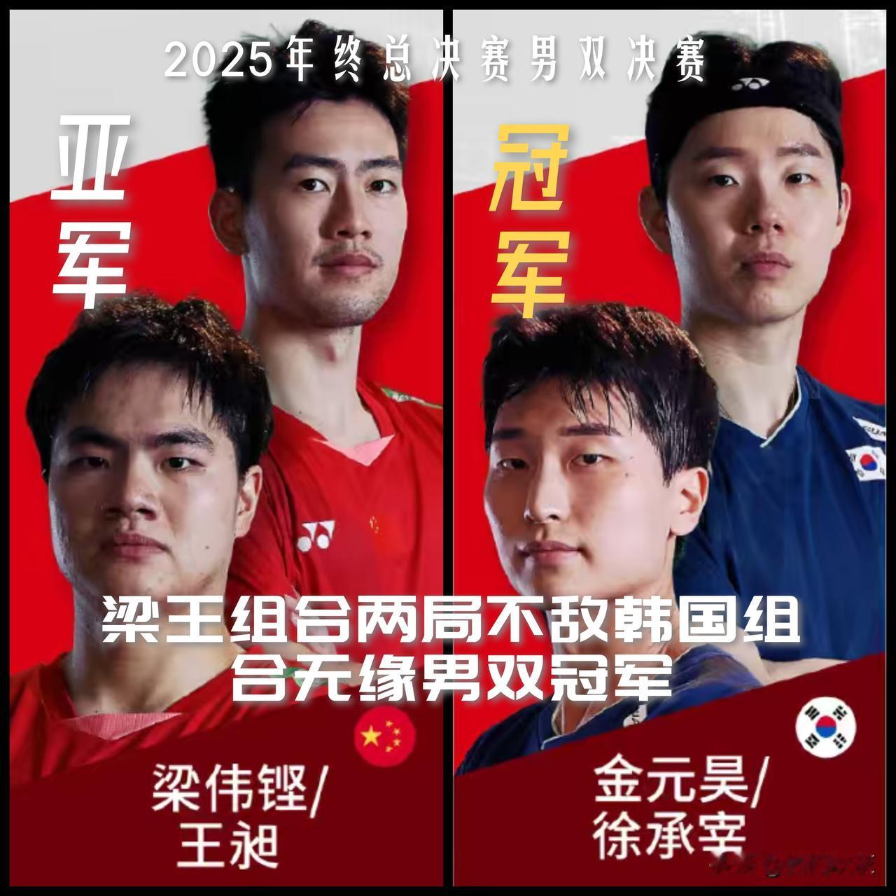 【国羽第四个亚军到手!梁王组合不敌韩国组合无缘男双冠军!】 2025世界羽联年终总决赛男双决赛,梁王组合以18-21、14-21不敌韩国组合无缘冠军。 本赛季年终总决赛全部收官,国羽收获一冠四亚,混双是绝对优势项目。