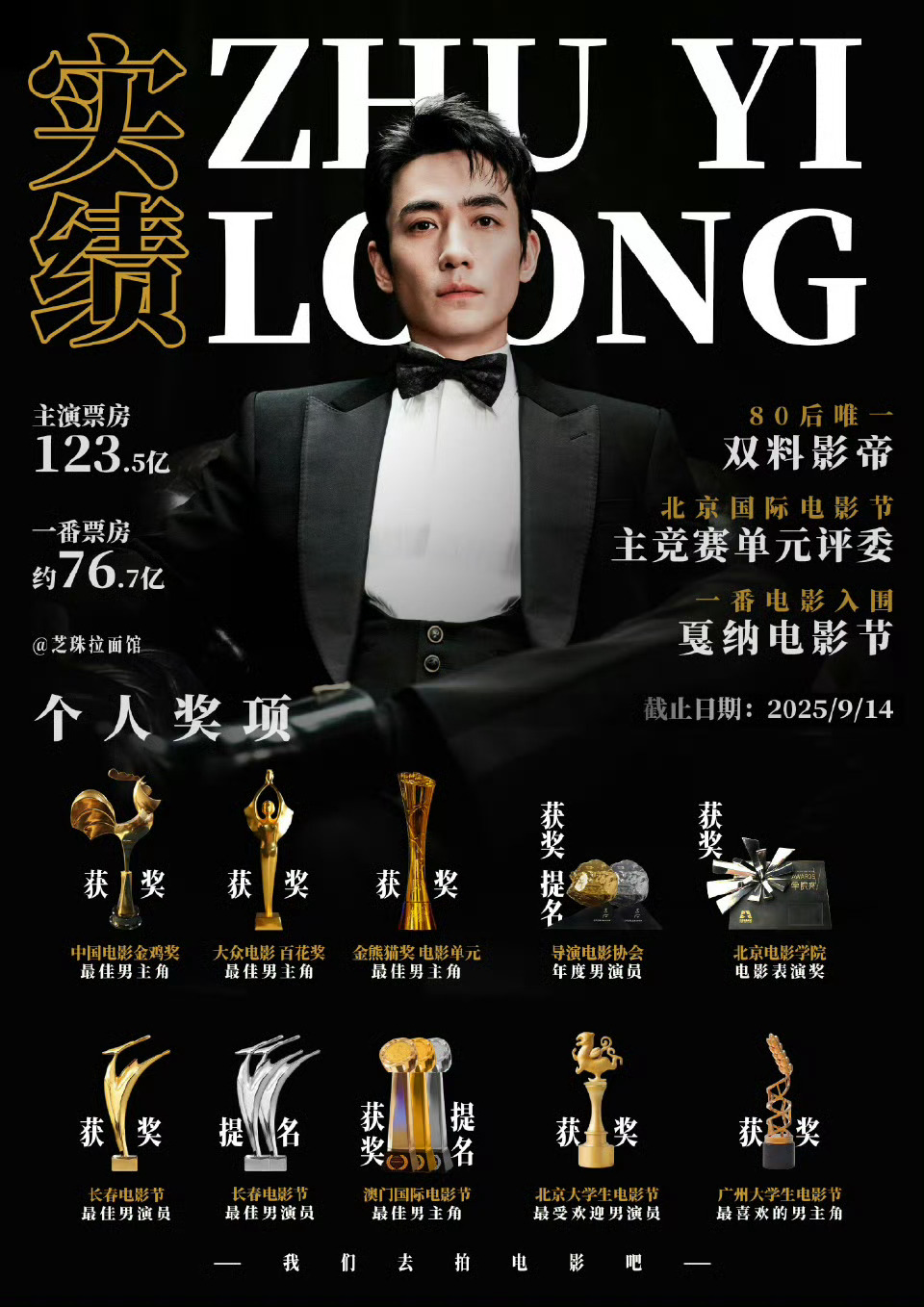 2025票房号召力男演员TOP10 名单来啦!我已为朱一龙 推荐了8次,助力他冲