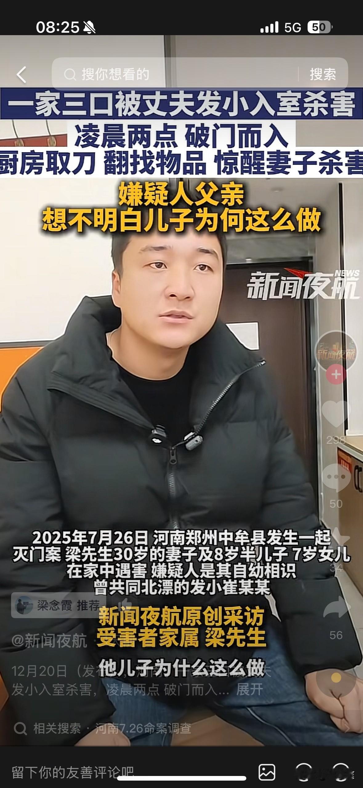 河南中牟崔某为什么要入室杀害发小妻儿三人?可能与案发前他收到对方的催债信息息息相关!这背后不仅仅是求财,更是他长久以来心态的失衡。 他们从小一块长大,有三十多年的发小情谊。一直以来,梁先生一家对崔某是仁至义尽、毫不设防。不仅在经济上多次帮衬,还待他像家人一般让他回家吃饭。除此之外,梁先生还借了钱他…… 外出打工前,梁先生将妻儿托付给崔某,让他多加关照。可谁也想不到,他最终竟残忍杀害了她们,还把其家中值钱的财物抢走了! 在这个事情背后,可能不仅仅是简单的求财杀人,更像是斗米恩升米仇的心态失衡。 崔某常年穷困潦倒,欠着外债,这样的情况,自家算是一地鸡毛!反观,梁先生却家庭幸福,他儿女双全、夫妻恩爱。不光工资有结余,还给妻子买了好几样金饰。 在二人的发小情谊里,梁先生多年的单向付出,早已经让崔某养成了习惯。在他心里,梁先生就该对他无偿帮助。 长久的失态失衡,已经让崔某蠢蠢欲动,他悄悄的配了梁先生家的钥匙。案发前,梁先生向崔某发去了讨债信息。 或许是那条原本再正常不过的信息,让崔某彻底破防! 当时是7月23日,梁先生在对话框里,让他把欠自己的钱先慢慢还一部分,崔某告知他自己手里没有钱,刚把窟窿补住,要过后有钱了再慢慢还他…… 这事过后,仅仅三天时间,梁先生妻儿三人被害。 这起令人痛心的事件,撕开了熟人关系里最不堪的一幕:三十多年的情谊,却没能抵挡住金钱的诱惑!崔某的所作所为,不仅对不起梁先生一家,更丢掉了自己做人的底线! 值得一提的是:崔某在当地向来人品不佳,村子里大多数人和他保持着距离,但梁先生却一直把他当兄弟一样相处。 经此一事,也给大家提了个醒:要有识人之心,财不外露。远离心术不正之人,才是保护家人的根本!