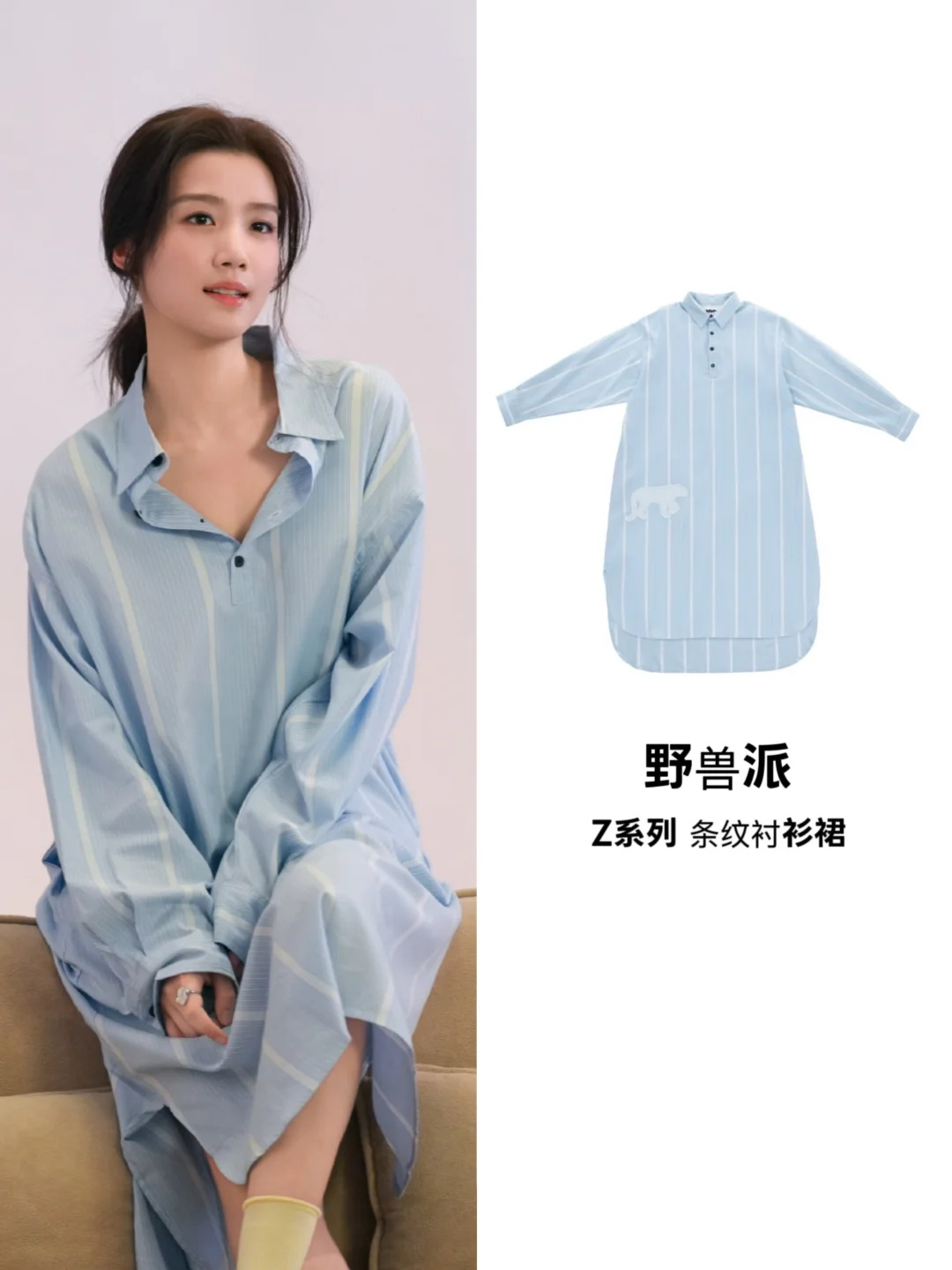 还有被疯狂种草的野兽派条纹衬衫裙睡衣,清新的浅蓝色条纹,满满的文艺氛围感,柔软丝滑的天丝混纺棉面料,随性又自在,居家穿幸福感会爆棚吧~