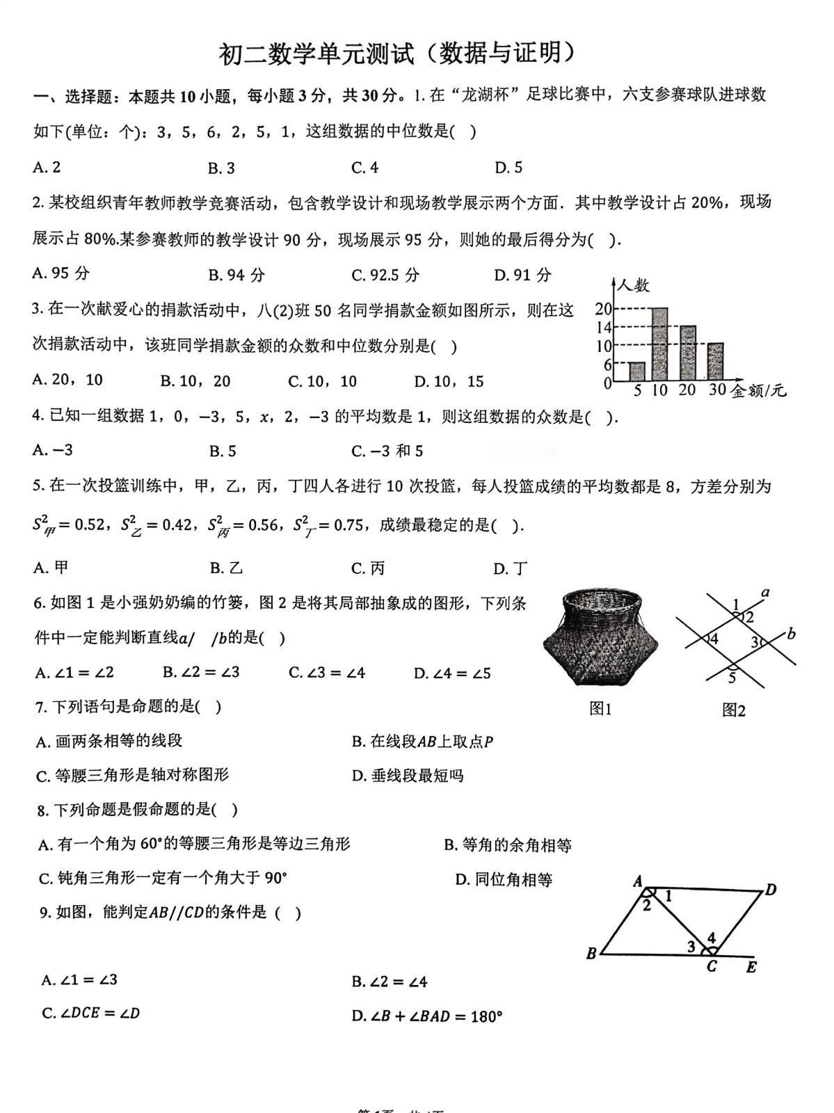 [途虫数学]初中数学精品卷分享,初二数学北师大版《数据证明单元测试卷》,题目比较简单,适合基础薄弱的学生。八年级数学试卷 初中数学 2026万唯中考母题解法提分技法思维方法大全初中通用必背知识精选
