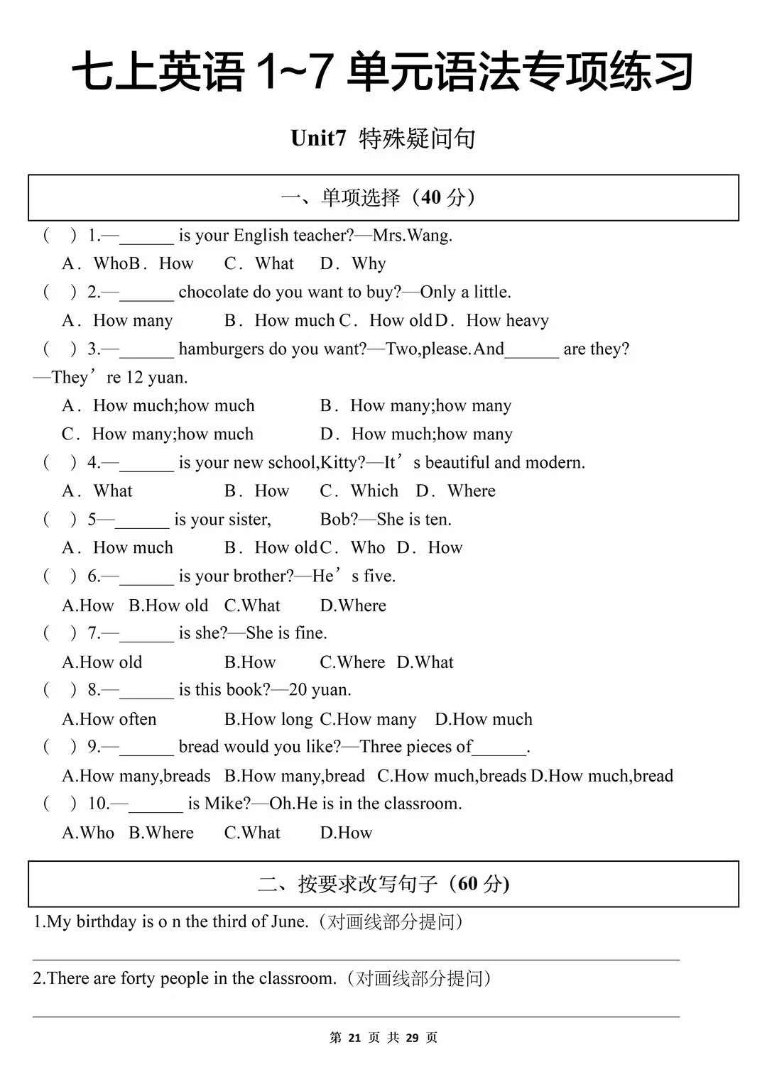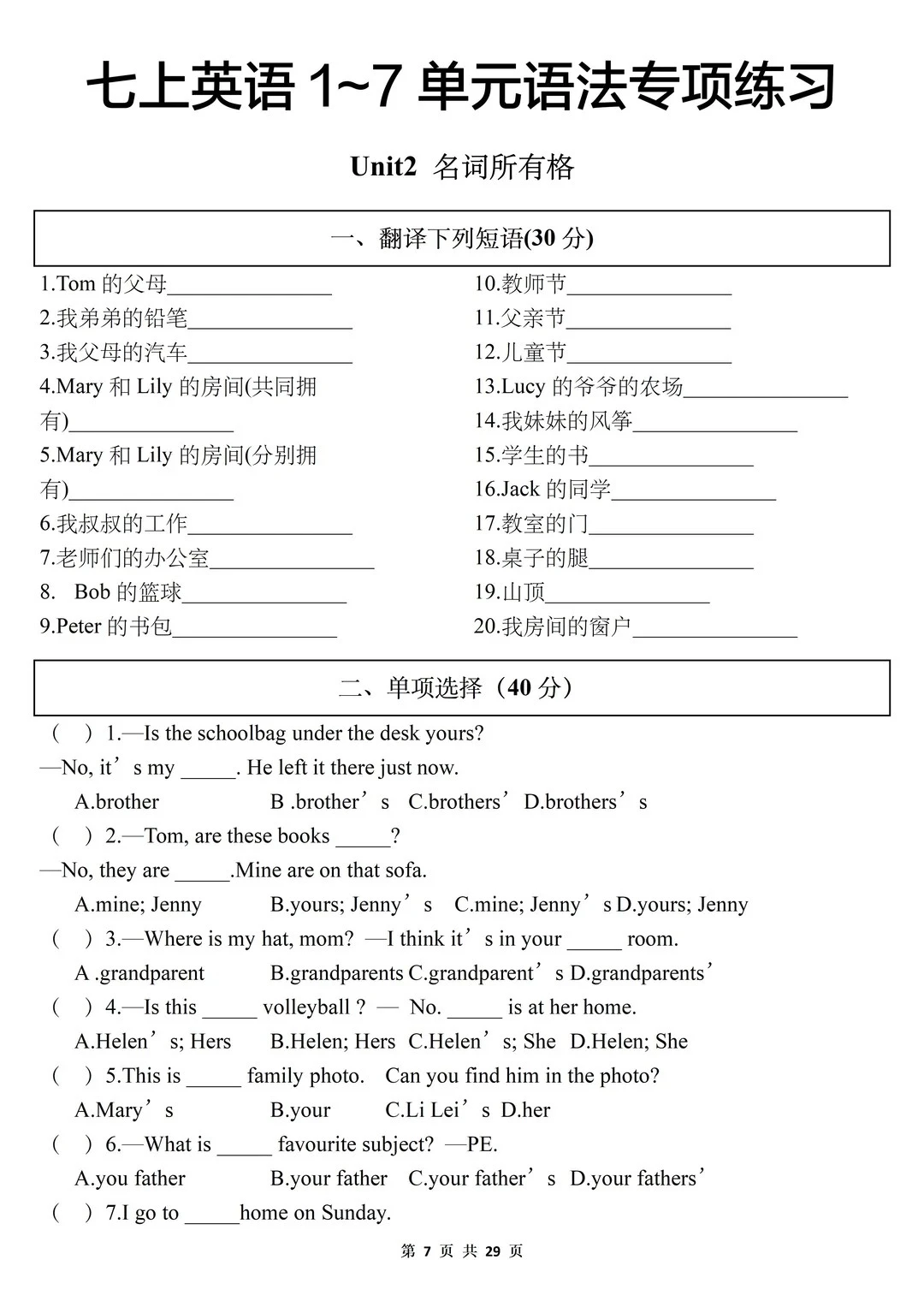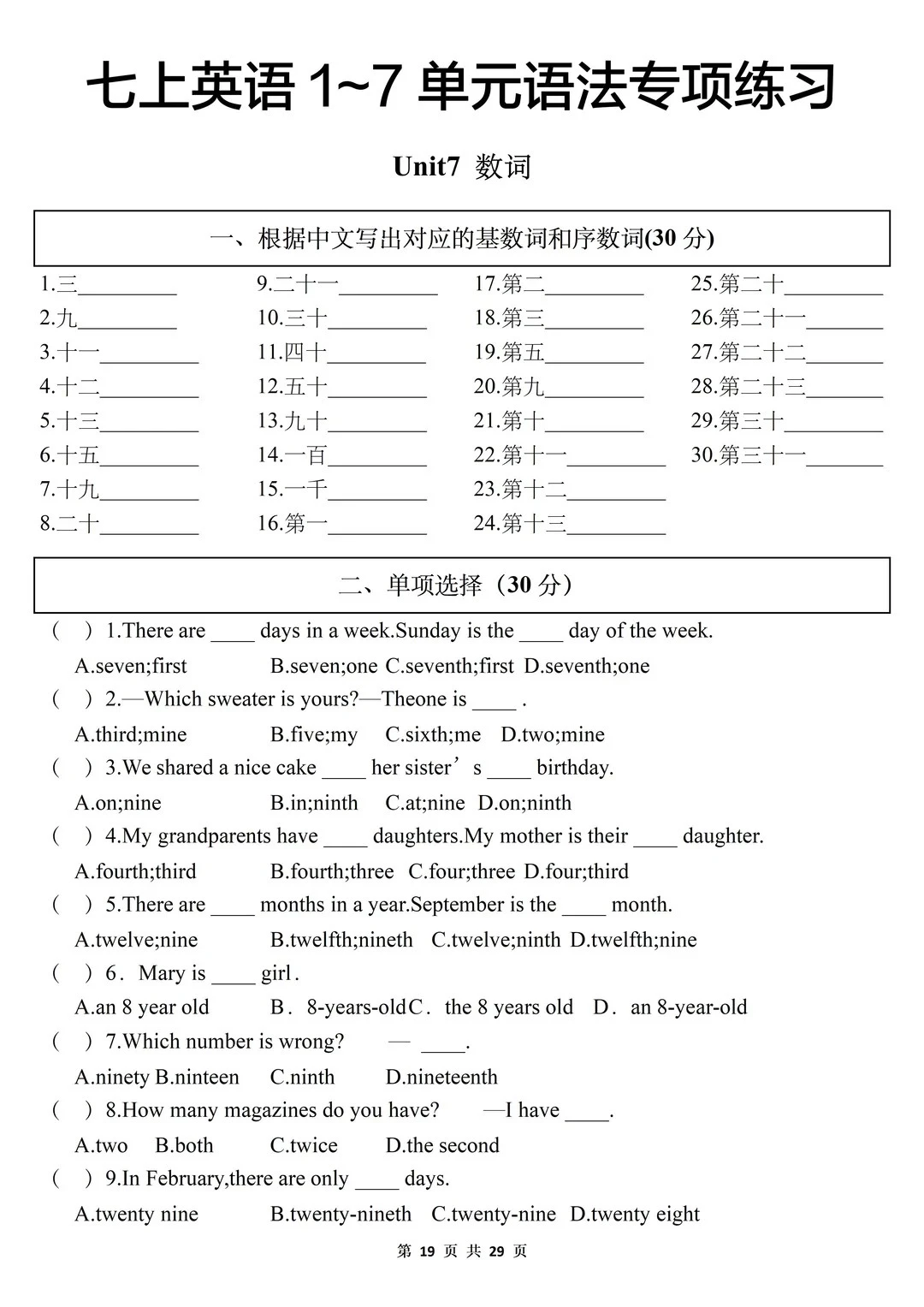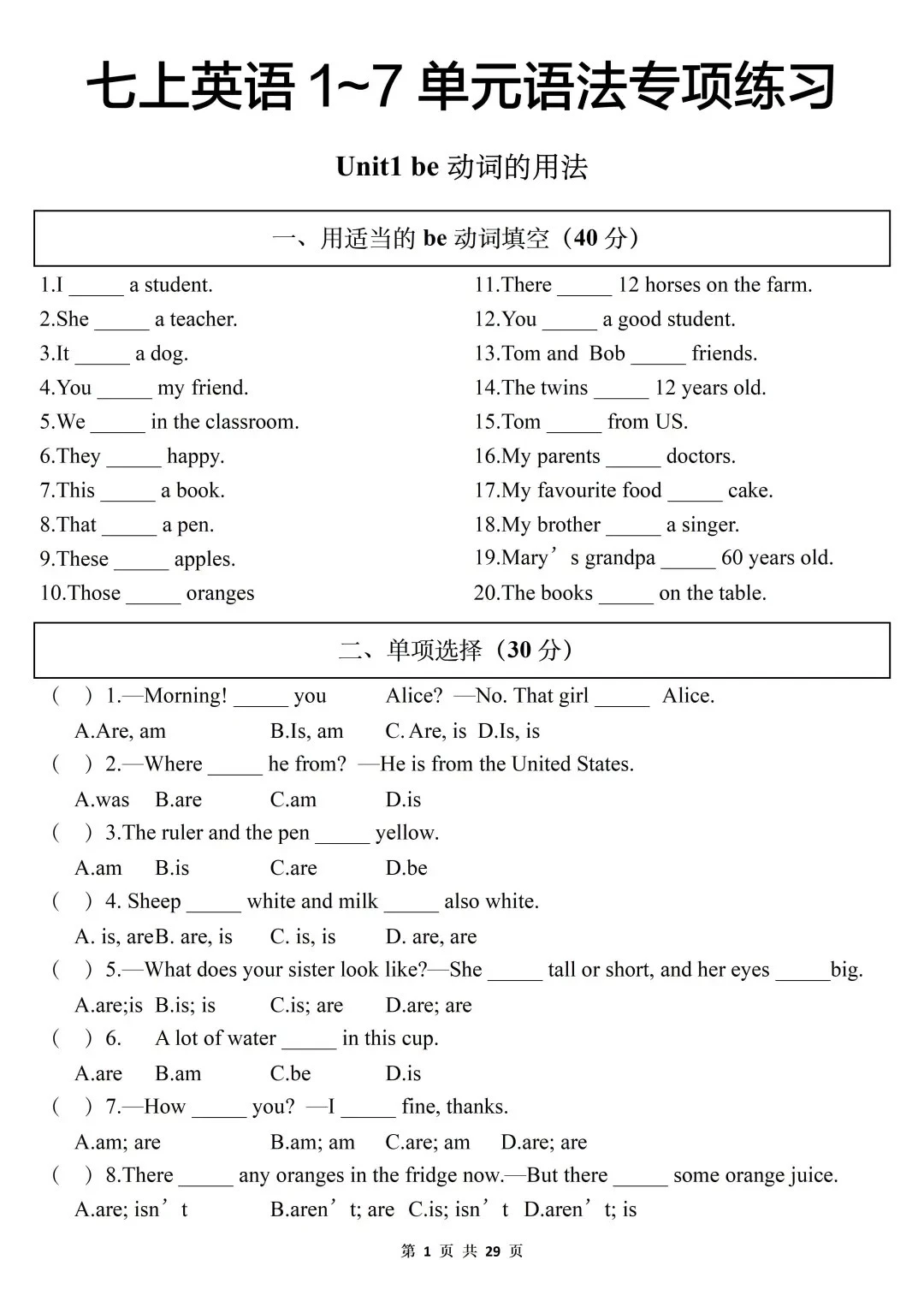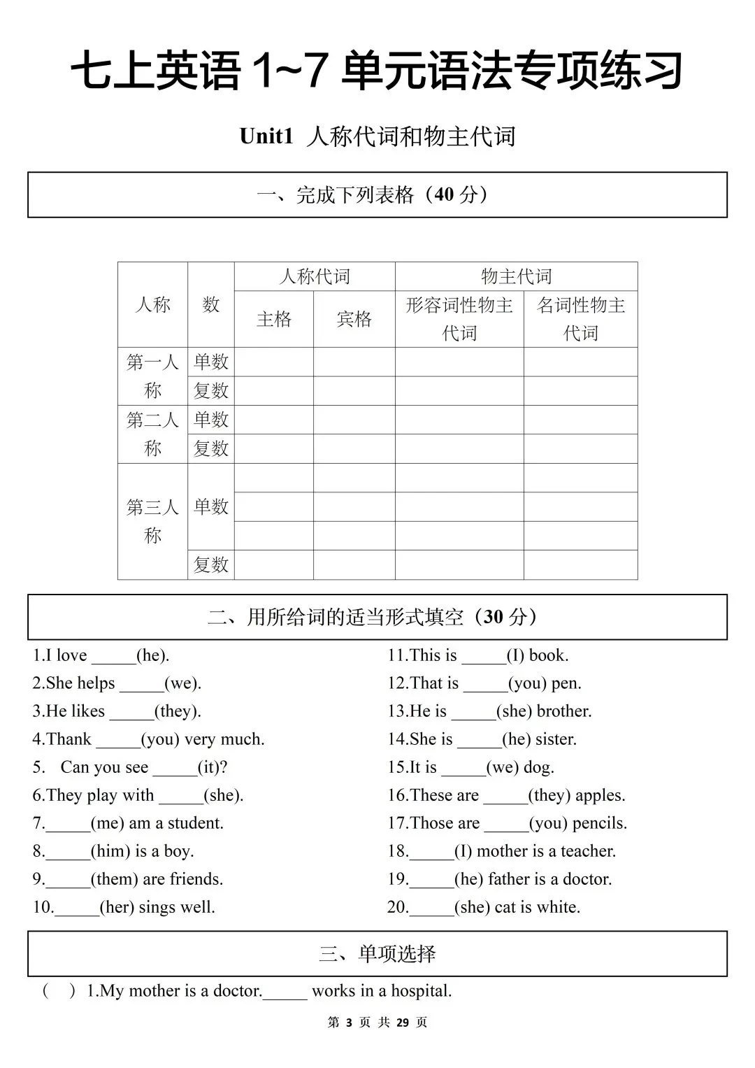 家长收藏孩子受益 知识点总结 七年级 七年级上册 七年级上册英语 初中英语 初一英语 每日一练 期末复习 初中英语语法必考考点期末考试