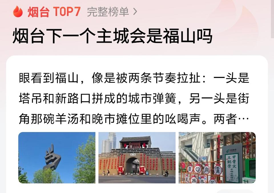福山区会是下一个主城区吗,福山区要不要做主城区?其实这个问题已经不是什么大的问题,福山本来就是烟台城区一部分,但是如果说福山区要成为主城区,那和黄渤海新区合并就可以了! 其实本身黄渤海新区大多数地区就是原来福山区一部分现在行政区划也属于福山区,既然如此福山区还不如直接和黄渤海新区合并这样黄渤海新区也有了更大的发展空间,也可以带动一下福山区,福山区也可以称为烟台新的主城区之一了! 其实不止福山区,还有蓬莱区,既然都有一部分划给黄渤海新区,还不如直接彻底一些,让黄渤海新区、福山区、蓬莱区完全合并,进行深度融合发展! 当然如果真的一下撤并两区难度也很大,也有干部需要安排,可以在莱阳、海阳、栖霞之间划出几个镇、街道设置南部新区,成立一个新的工业、高新技术产业园区,给与足够多的优惠政策,利用这个新区带动南部经济发展!同时把牟平区东部三四个乡镇街道划给昆嵛山保护区升级保护区级别!充分发展林区经济!