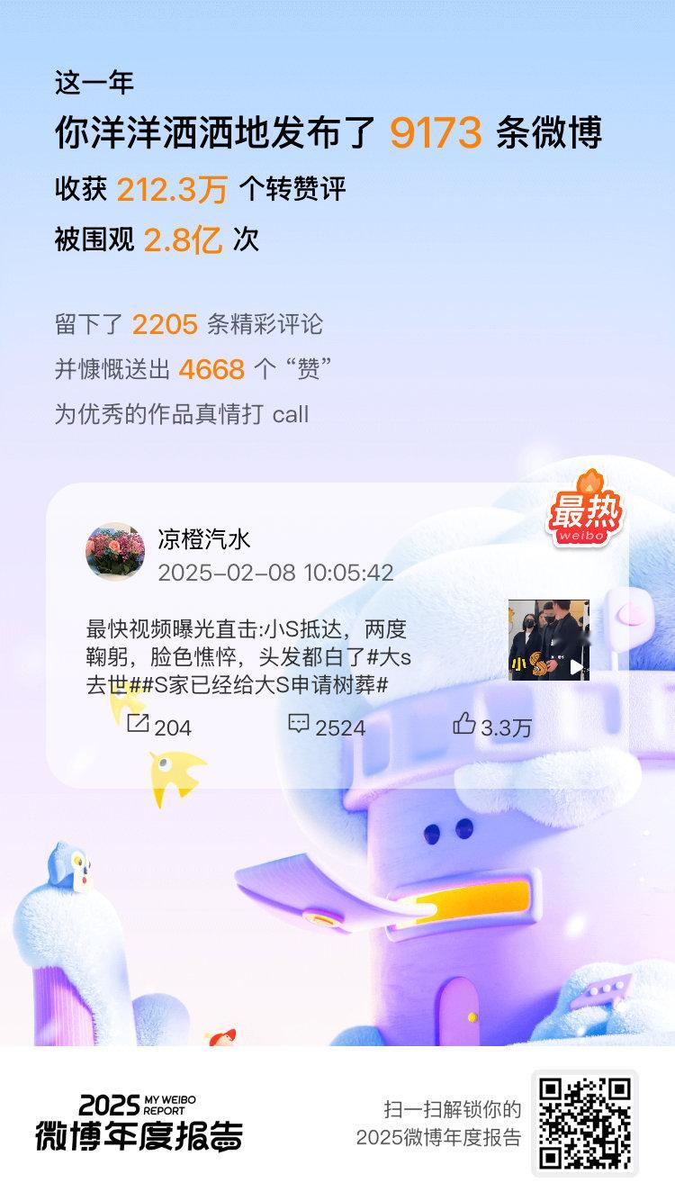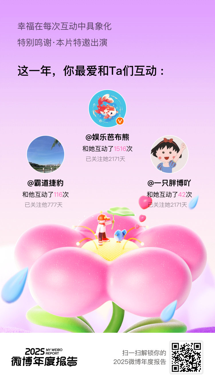 给2025努力的自己点个赞!也把大大的赞送给你们!今年微博视频创作时长等于几集甄嬛传微博年度报告