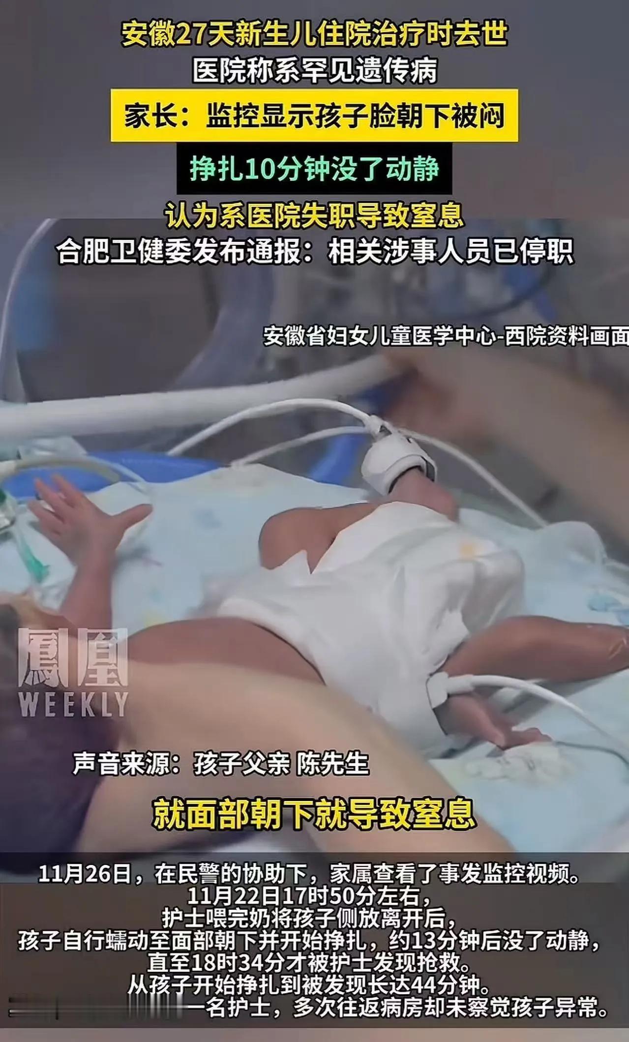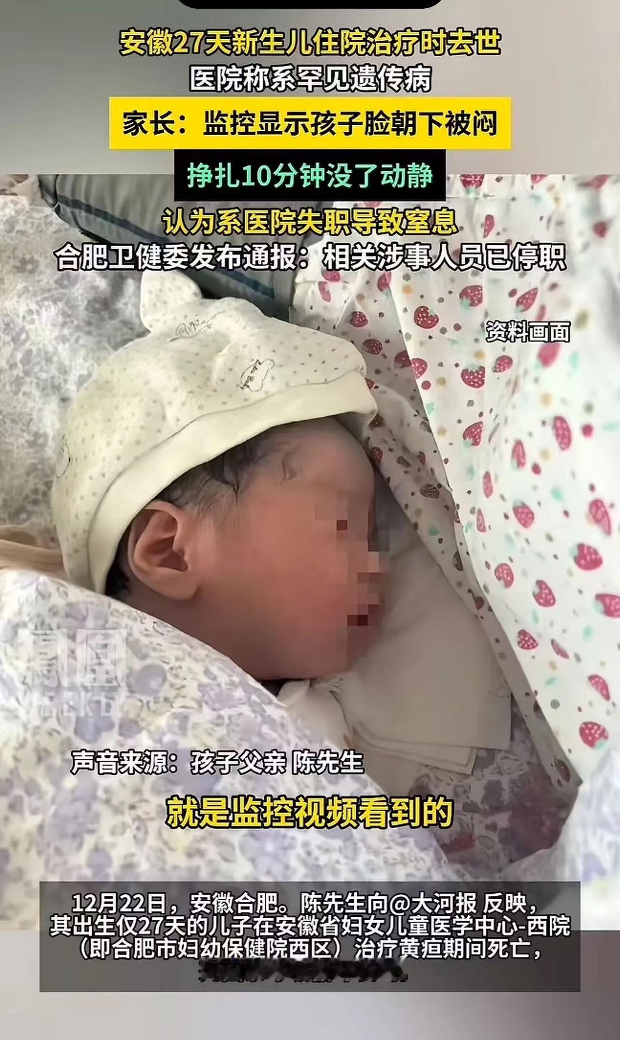 又一新生儿死亡!合肥icon,一新生儿黄疸住院治疗,结果突然死亡。家长查看监控后发现,孩子竟然脸朝下被闷在床上挣扎了10分钟,半小时后才被发现,医院一开始还想推卸责任称系遗传病致危!网友:孩子是来治病的,结果在医院丢了命,太让人痛心了! 这起悲剧像一记重锤,狠狠击打在无数父母的心头,也让社会再次陷入沉思。一个刚刚来到这个世界的生命,竟然在医院里毫无防备地失去了呼吸权,究竟发生了什么?难道我们还相信“遗传病”能成为孩子死亡的唯一原因吗?或者,这背后隐藏着更深层次的责任与人性考验? 每一个孩子都是父母的全部,是家庭的希望,也是社会未来的栋梁。可为什么在最应该受到关爱与保护的地方,却成为了无辜的牺牲品?这不仅仅是一起医疗事故,更是一次对制度、对人性的拷问。医院的推诿甩锅,家长的无力抗争,似乎都折射出一个令人心碎的现实:在某些角落,生命的价值似乎变得如此脆弱、如此脆弱。 更令人愤怒的是,监控视频曝光后,证据昭然若揭:这个新生儿在那短短10分钟里,脸朝下被闷在床上挣扎,竟然无人及时察觉。天知道,多少家长在焦急等待的背后,心里多么恐惧、绝望。为什么会发生这样的疏忽?是医院的管理漏洞?还是对生命的不尊重?每一次的“推诿”,都像是在告诉我们:在某些地方,生命似乎不被视为最重要。 这起事件激起了公众的愤怒,也引发了对医疗安全的深刻反思。我们不能允许这样的悲剧再次重演,也不能让“责任推卸”成为常态。每一个孩子的生命都值得被珍惜,每一份责任都应当被问责。我们期待制度的完善,更希望每个医务人员都能从这次惨痛的教训中汲取良心的力量。 同时,也请每一位父母、每一个普通人,别只是在事后愤怒和哀叹。我们要用行动推动变革,用声音唤起社会的关注。孩子是我们的未来,他们的生命不应成为任人摆布的棋子。让我们共同呼吁:让医疗环境变得更安全,让每一个新生命都能在温暖与关爱中成长。 这场悲剧,虽然令人心碎,但也希望成为我们反思的起点。只有当我们真正尊重生命、守护每一个微小的生命细节,才能让未来少一些悲剧,多一些希望。每个生命都值得被珍惜,每个呼吸都应被温柔对待。别让悲剧成为常态,让我们一起努力,为孩子们营造一个真正安全、充满爱的世界。新生儿离世 新生儿离世 新生儿嗮黄疸 黄疸 新生儿医疗事故 新生儿泡黄疸 新生儿缺氧窒息