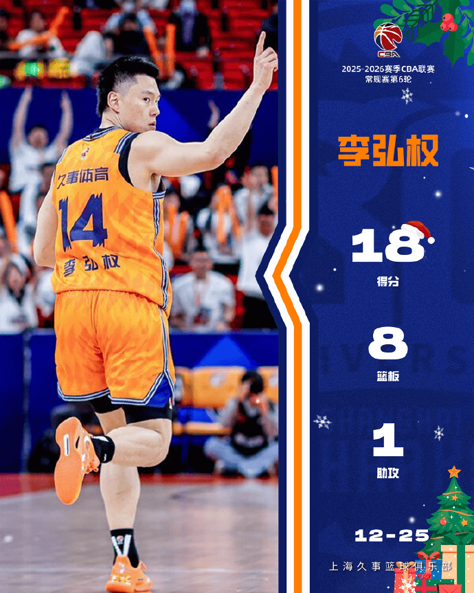赛后,上海男篮分享李弘权数据海报:在今晚对阵江苏肯帝亚的比赛中,我鲨球员李弘权全场出战31分57秒,8投6中,高效砍下18分8篮板1助攻1抢断1盖帽,是球队外线最稳定的得分点!掌声送给我们的BenLi!希望他的投篮手感一直火热下去!