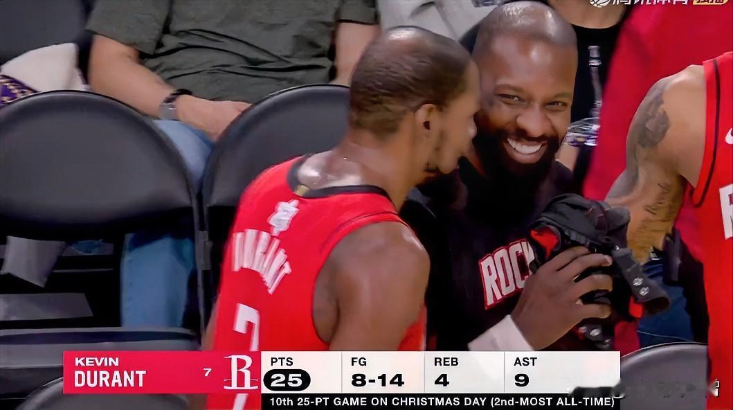 圣诞大战,昔日联盟大小王火星撞地球。最终凯文·杜兰特笑到最后,火箭客场大胜湖人。勒布朗·詹姆斯发挥中规中矩正负值-33。显然无法带队力挽狂澜。死神杜兰特成为历史上连续10次圣诞大战得到25分以上的唯一球员。