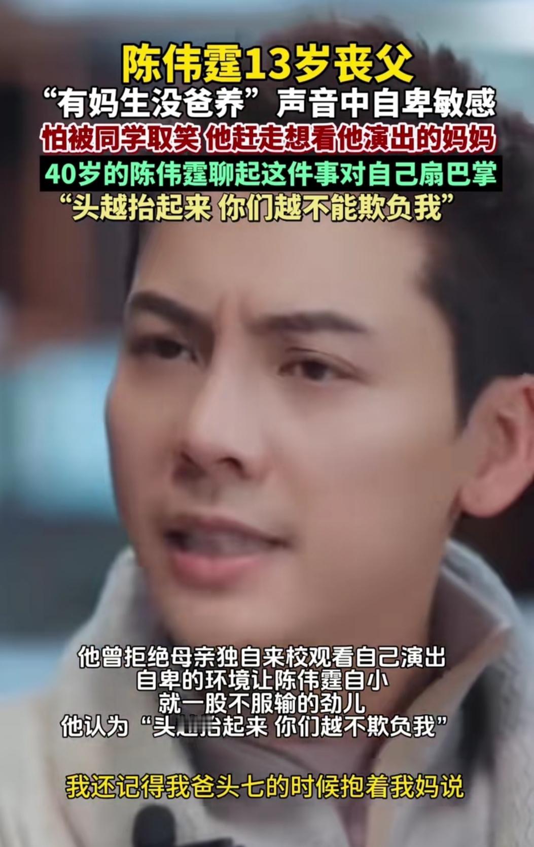 刷到陈伟霆聊13岁丧父的专访,最让人心疼的不是被同学说“有妈生没爸养”,而是他亲